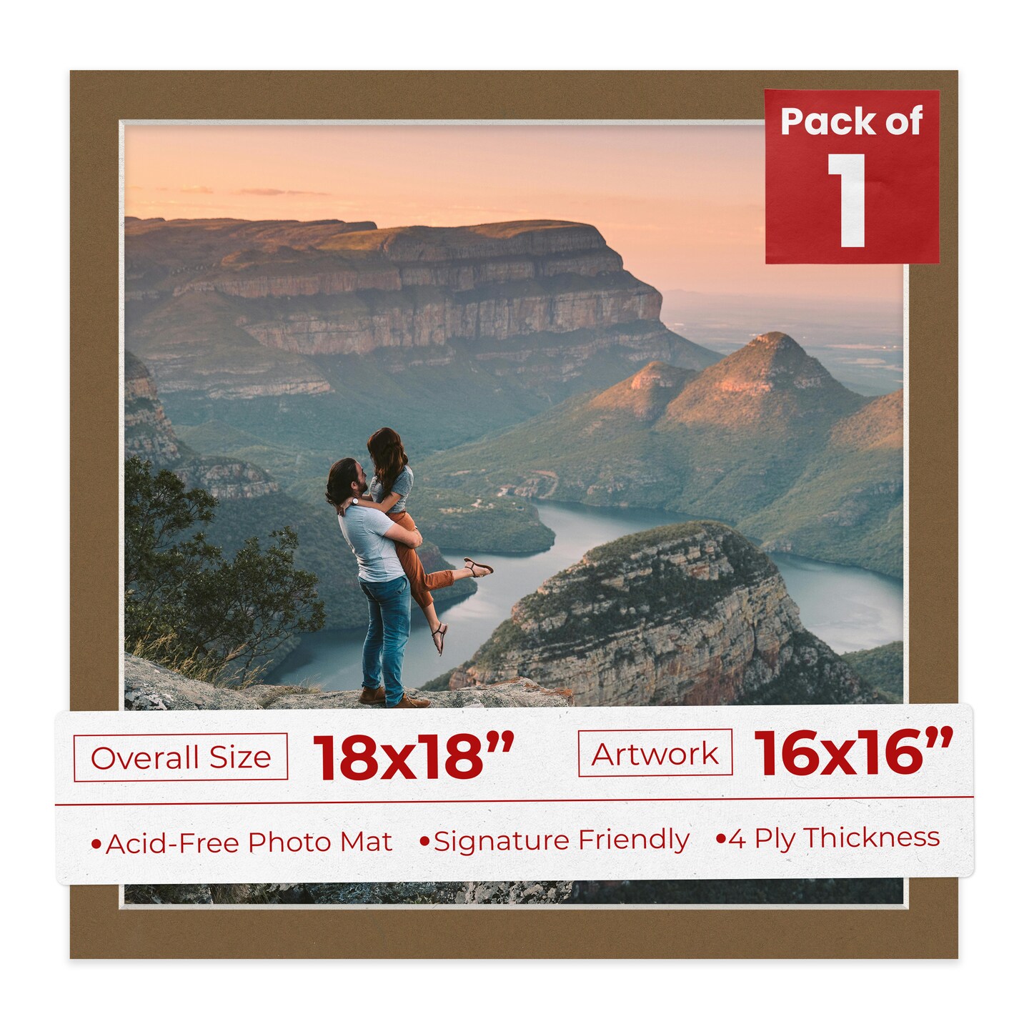Aged Oak Brown Mat Board for 18x18 Frames - Fits 16x16 Photos