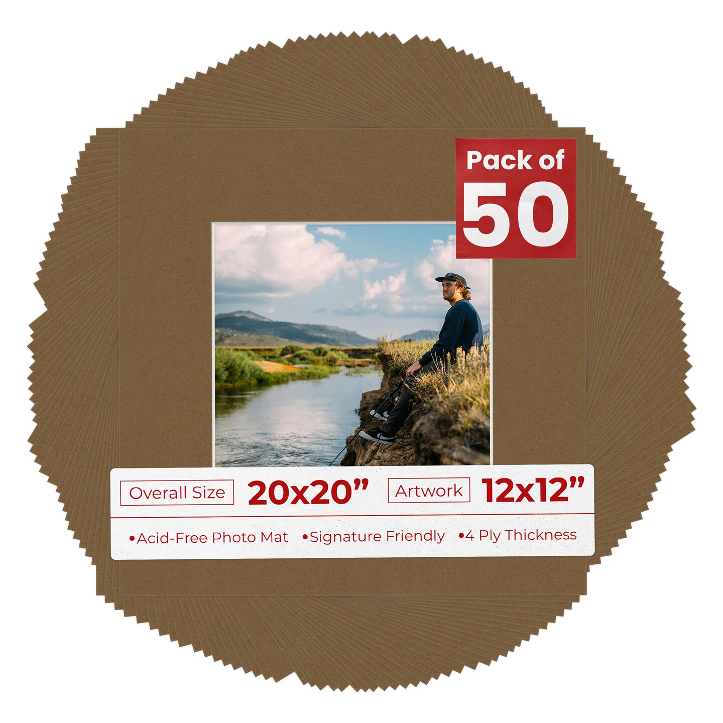 Aged Oak Brown Mat Board for 20x20 Frames - Fits 12x12 Photos