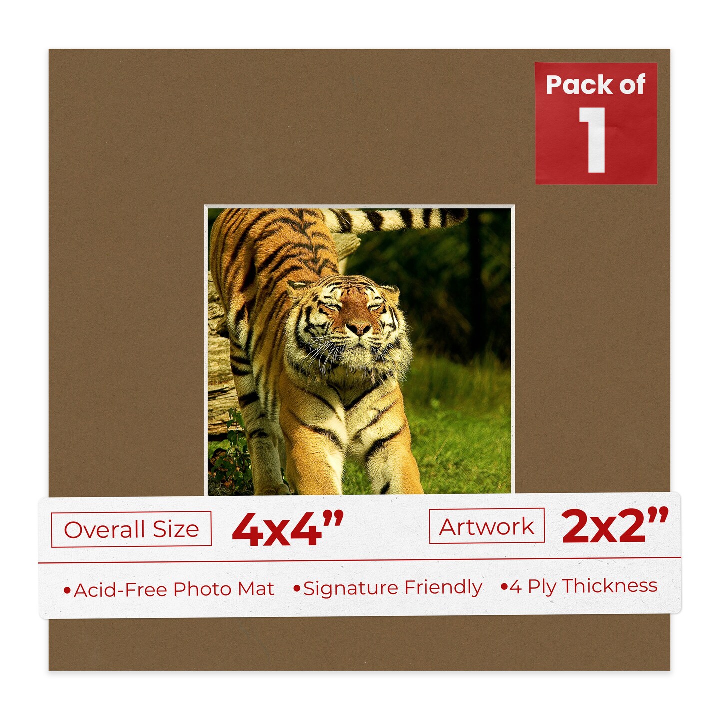 Aged Oak Brown Mat Board for 4x4 Inch Frames - Fits 2x2 Photos