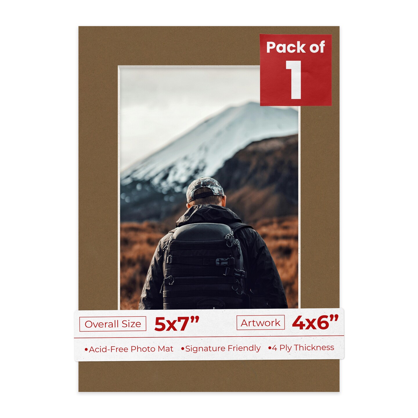 Aged Oak Brown Mat Board for 5x7 Frames - Fits 4x6 Photos