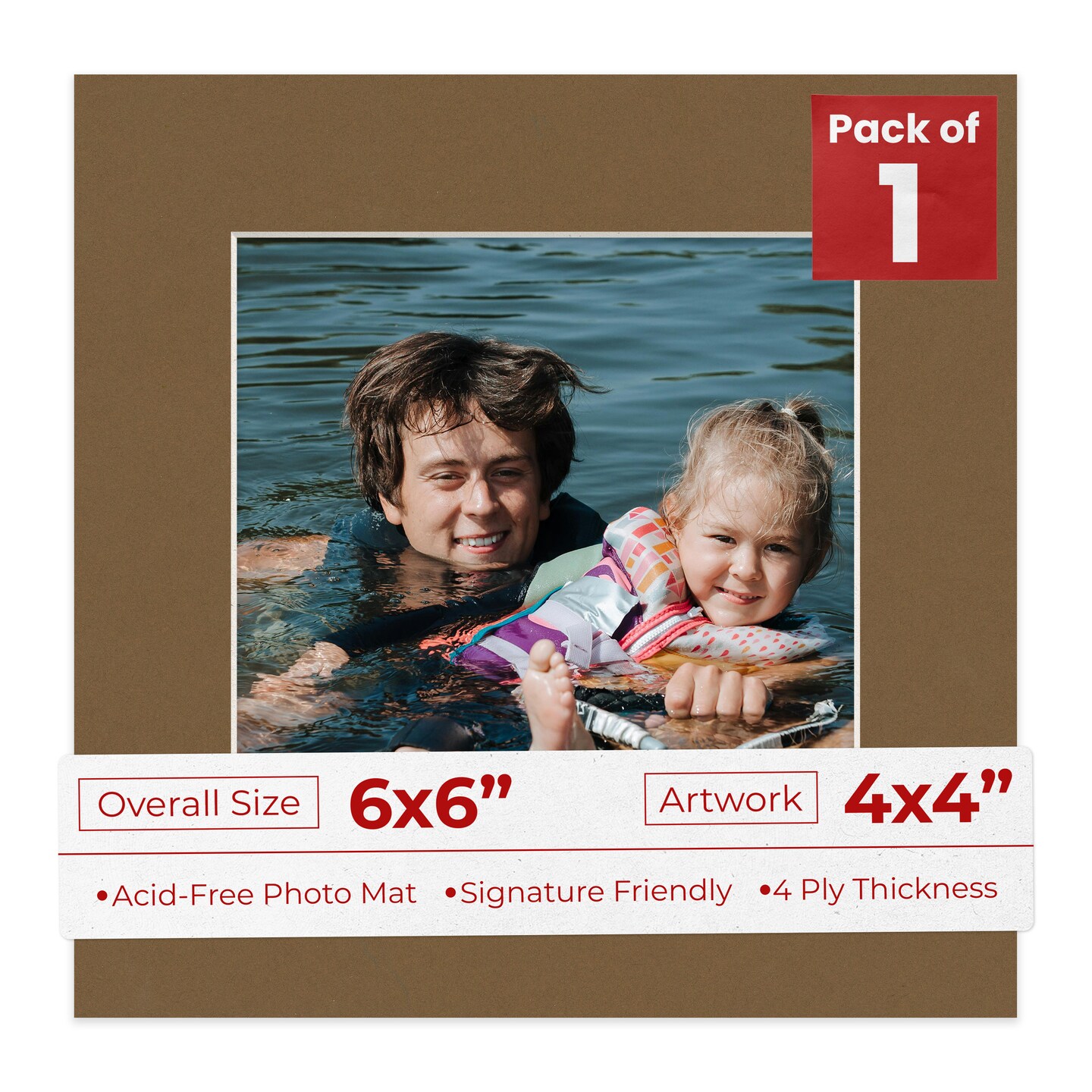 Aged Oak Brown Mat Board for 6x6 Frames - Fits 4x4 Photos