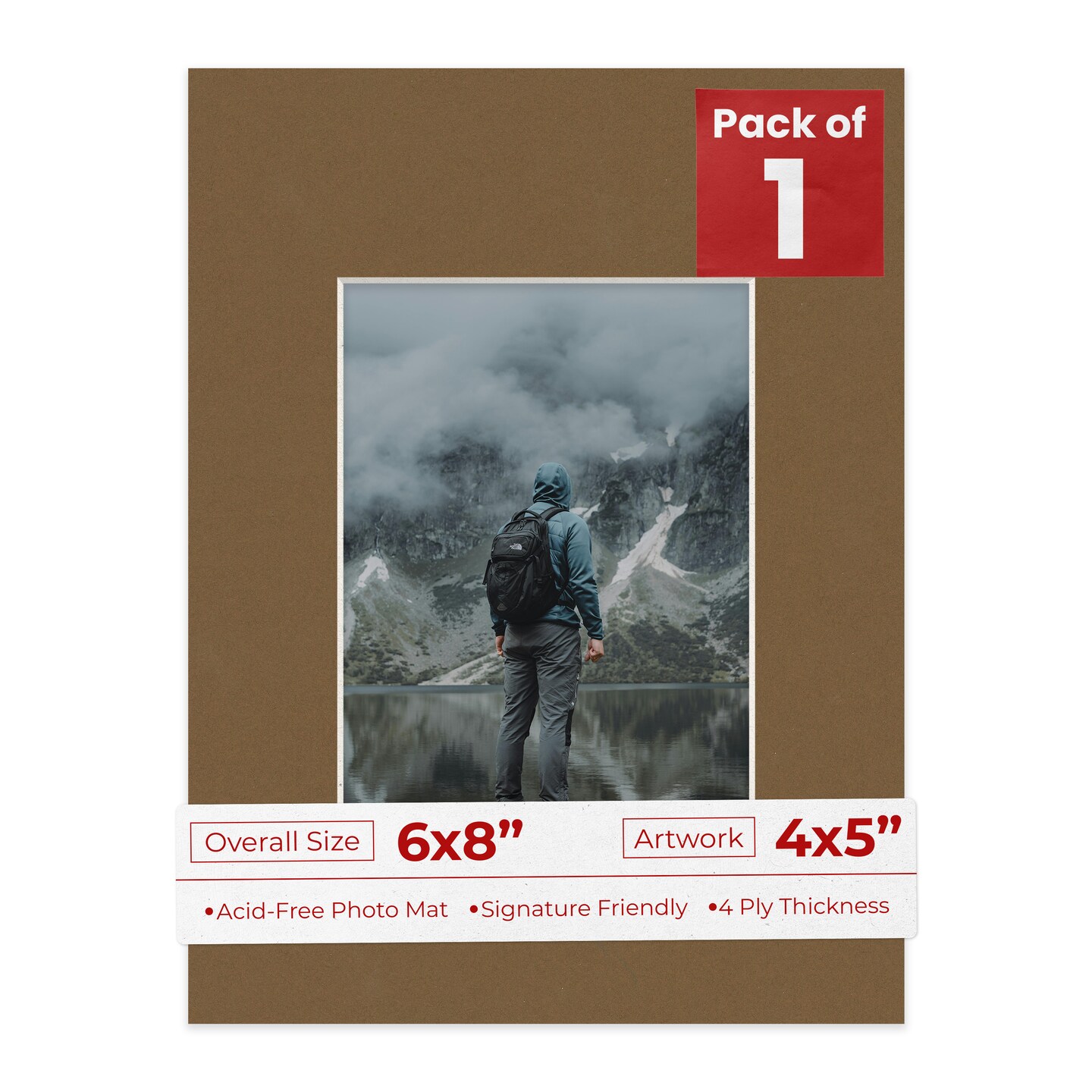 Aged Oak Brown Mat Board for 6x8 Frames - Fits 4x5 Photos