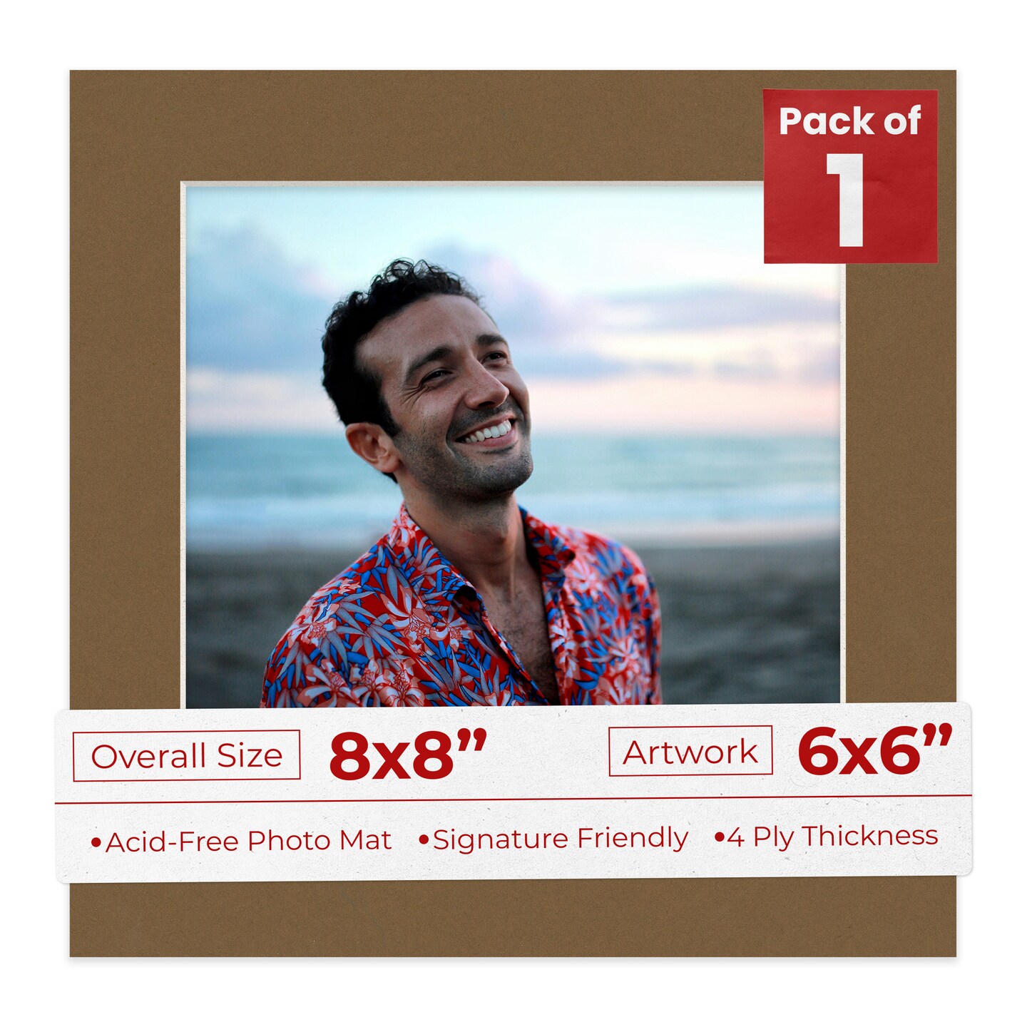 Aged Oak Brown Mat Board for 8x8 Frames - Fits 6x6 Photos