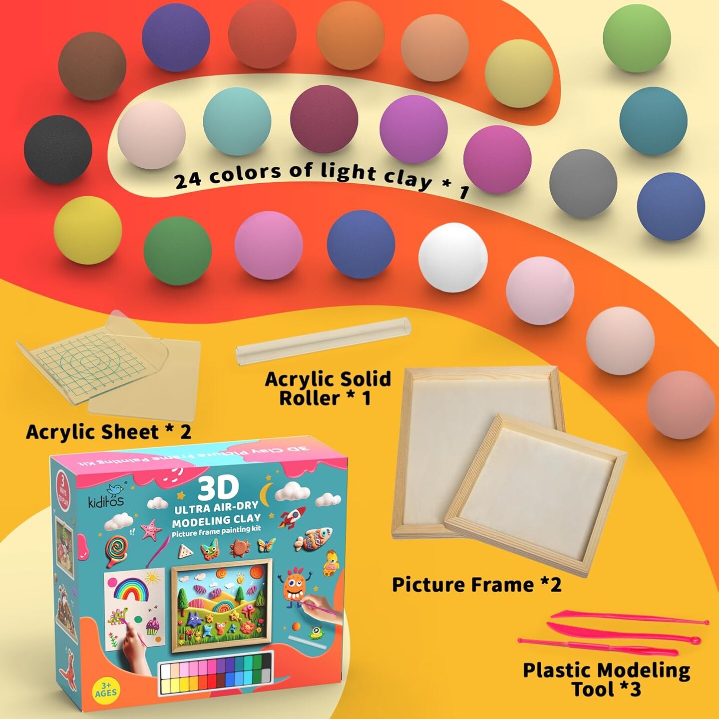 Air Dry Clay with Picture Frame,24 Colors Modeling Clay Painting DIY Kit for Kids and Adults,Soft&Ultra Light,Christmas&Birthday Gifts Education Craft Toy with Sculpting Tools