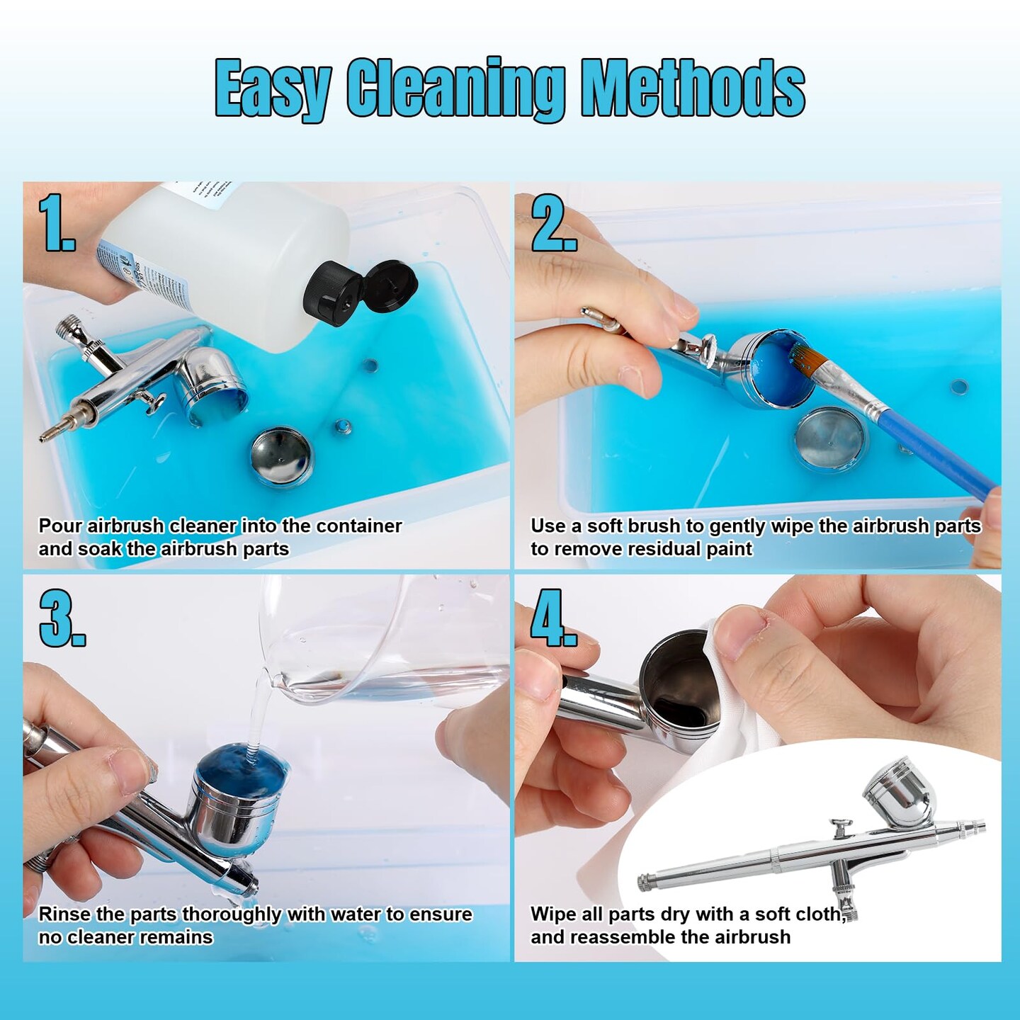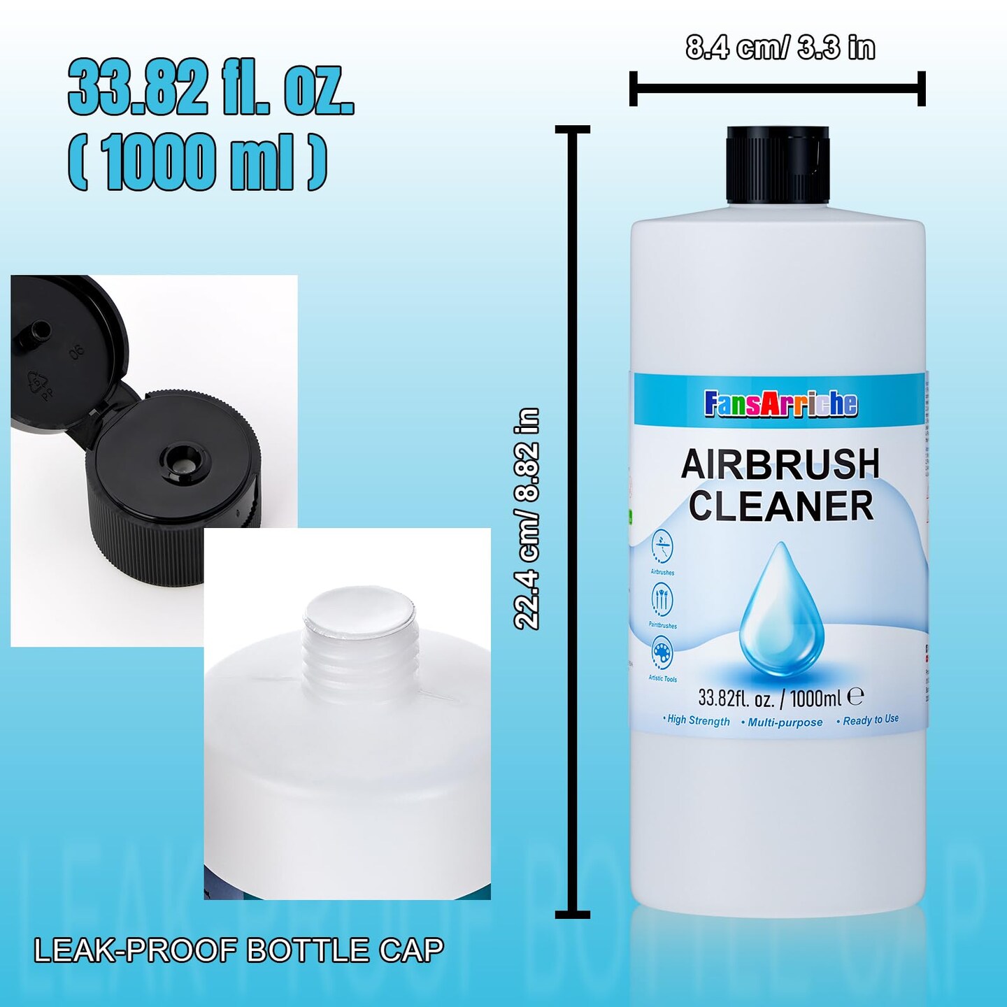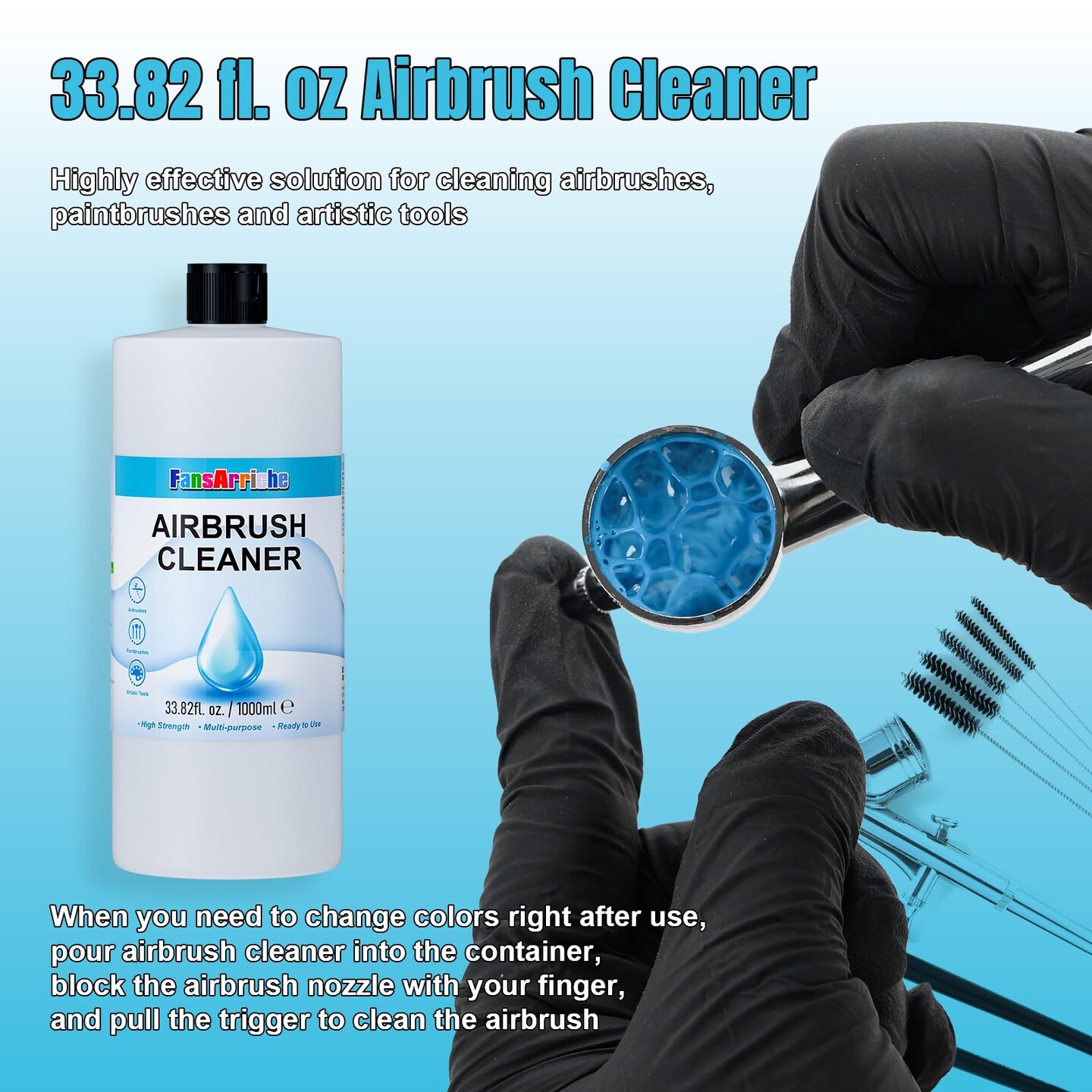 Airbrush Cleaner, 33.82 Oz Air Brush Cleaning Solution for Water-Based Acrylic Color Paints, Quickly Clean Clogged Airbrushes, Paint Brushes, Art Tools