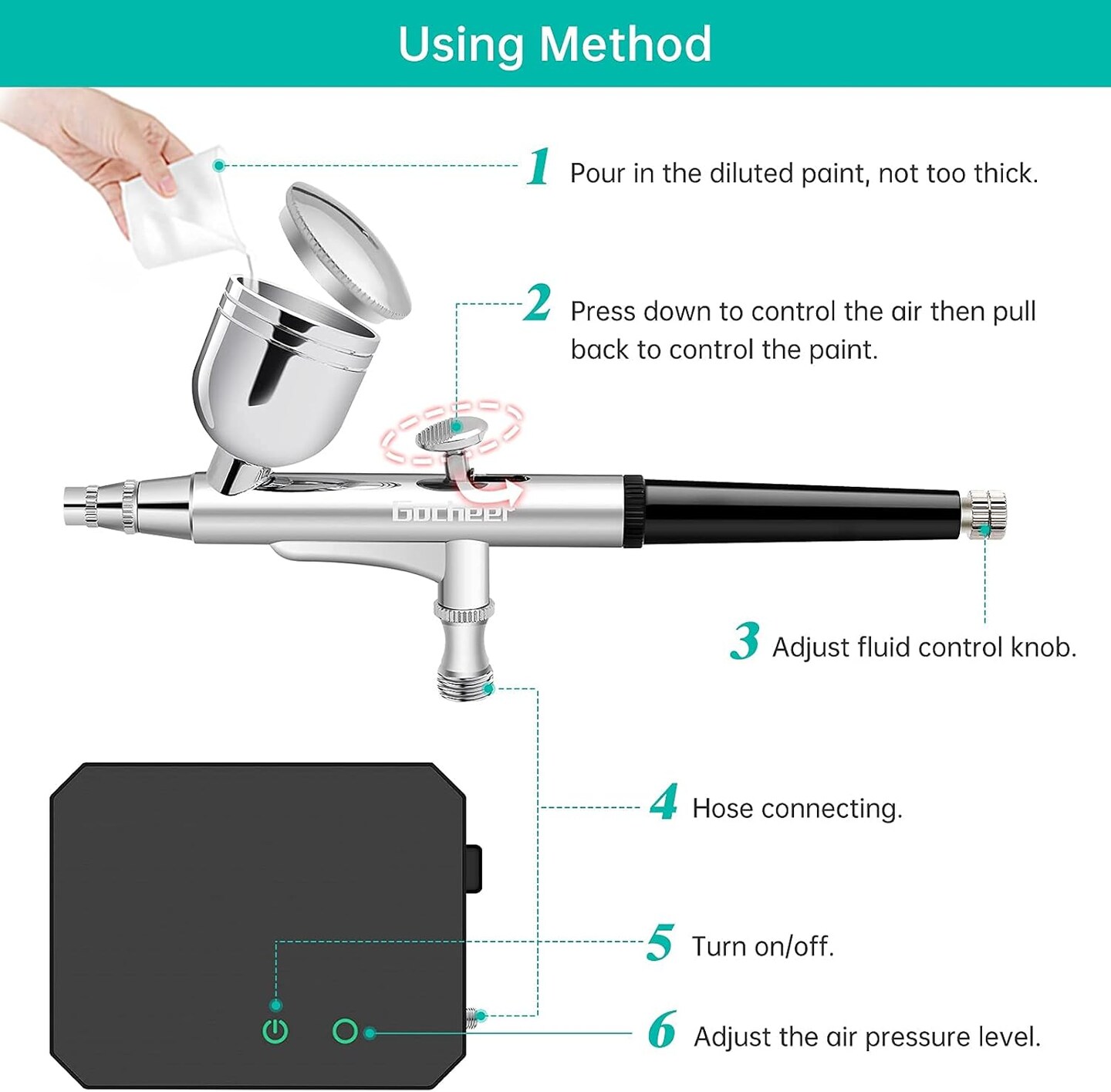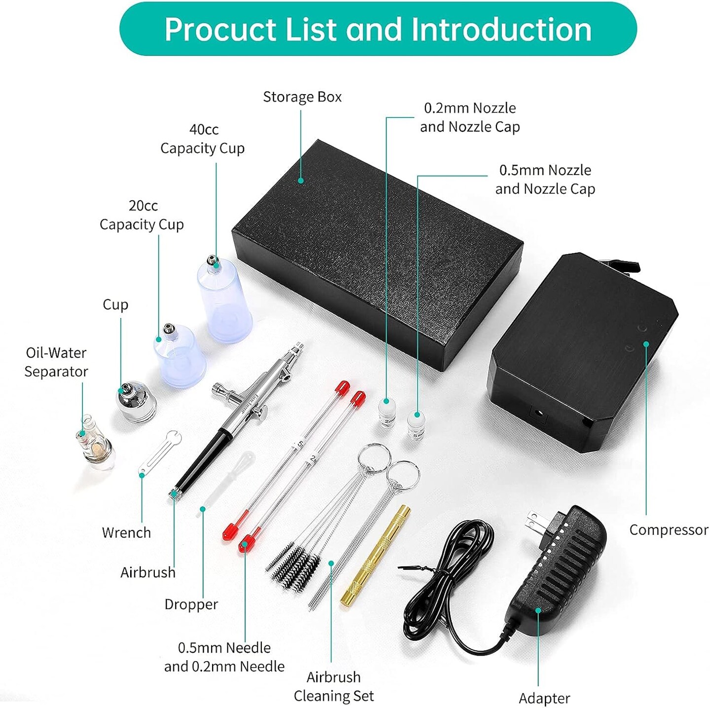 Airbrush Kit with Air Compressor, 40 48 PSI High Pressure Air Brush Non-Clogging