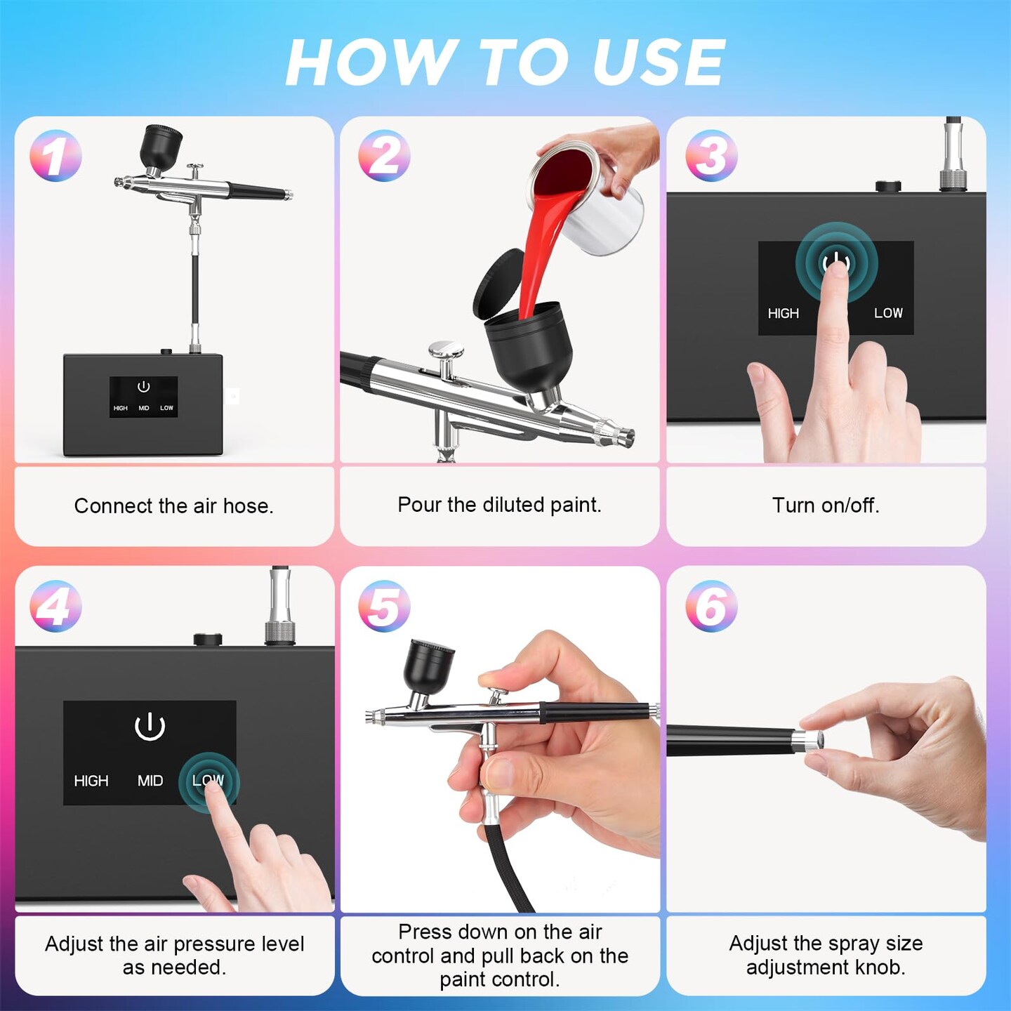 Airbrush Kit with Air Compressor: 50PSI High Pressure Air Brush Kit with 0.2/0.3/0.5mm Nozzle & Cleaning Set for Painting, Modeling, Cake Decorating, Makeup, Nails, Crafts