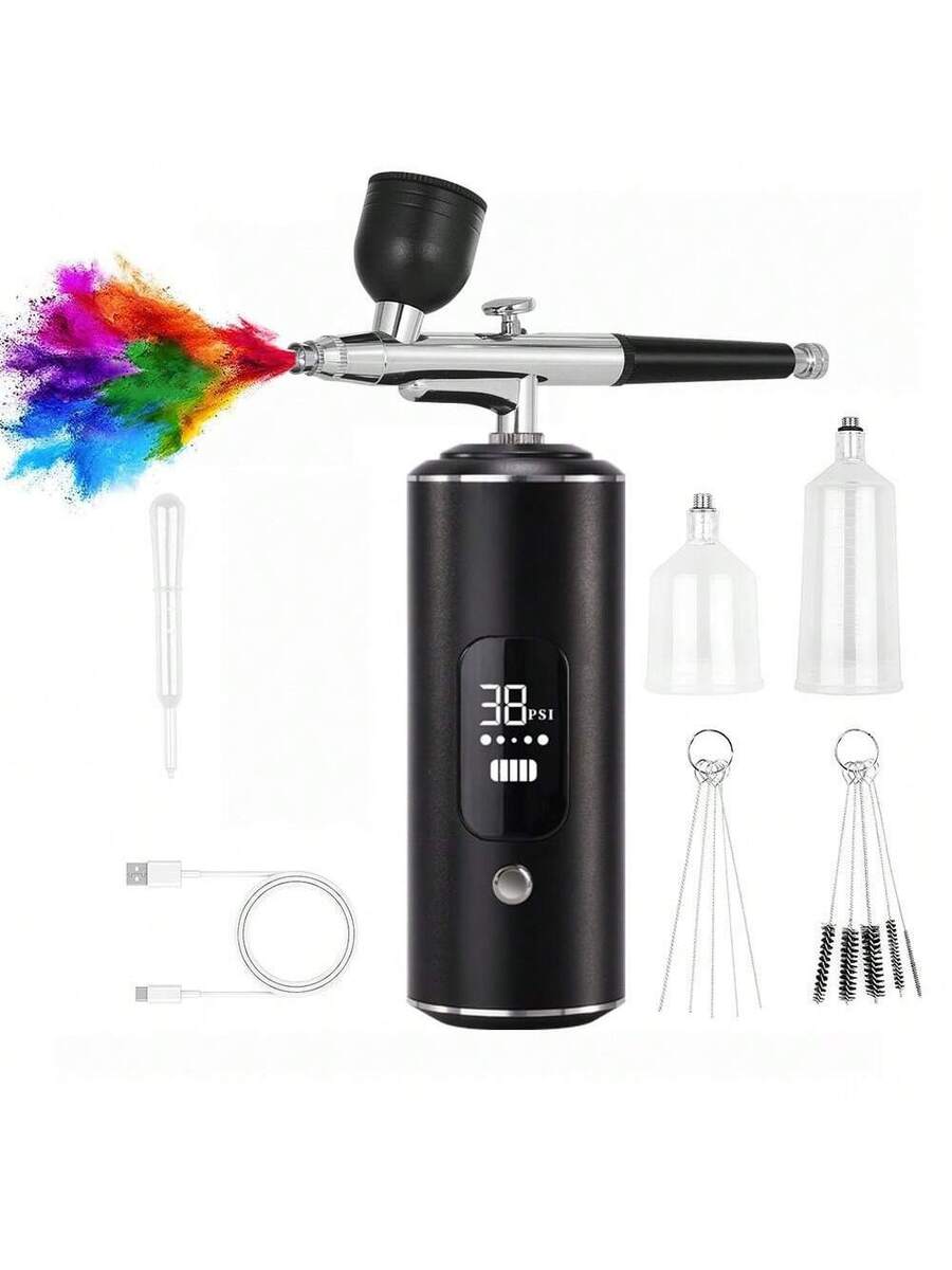 Airbrush Kit with Compressor, Digital Display, 3-Speed Adjustment, Rechargeable 900mAh Lithium Battery