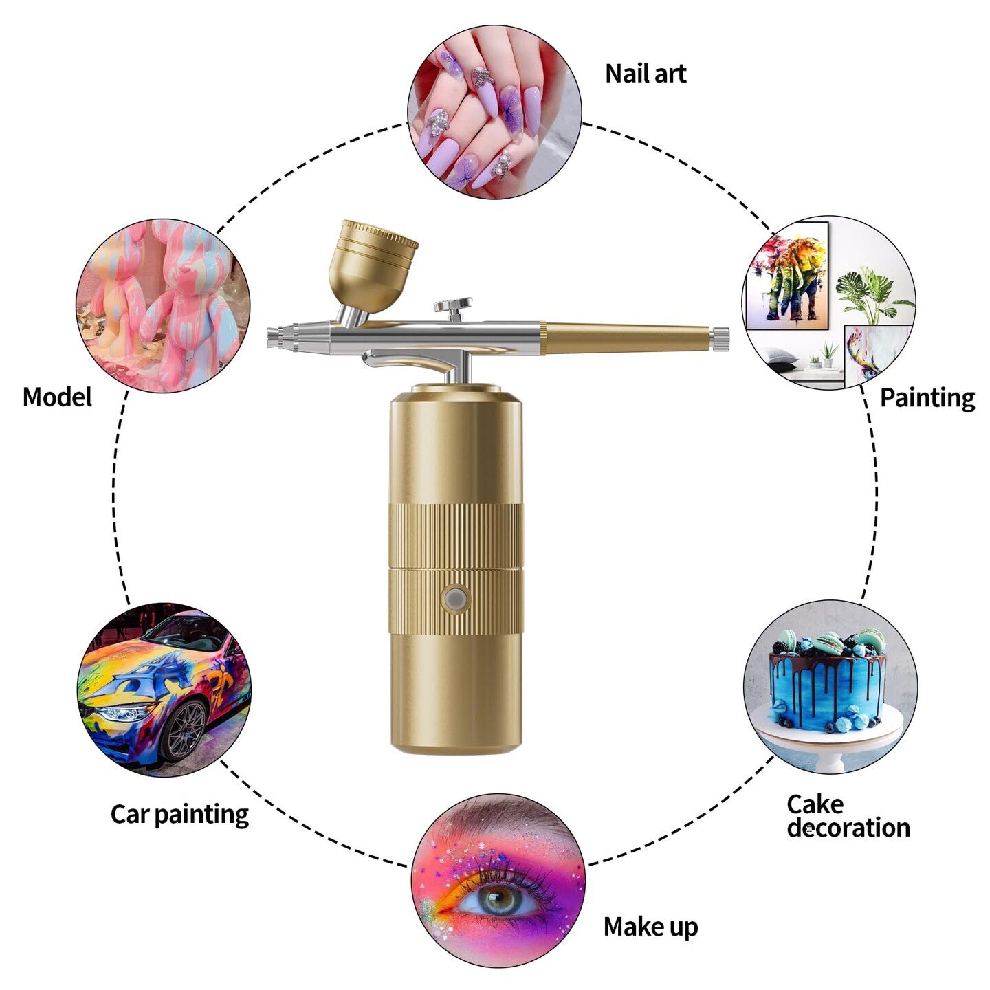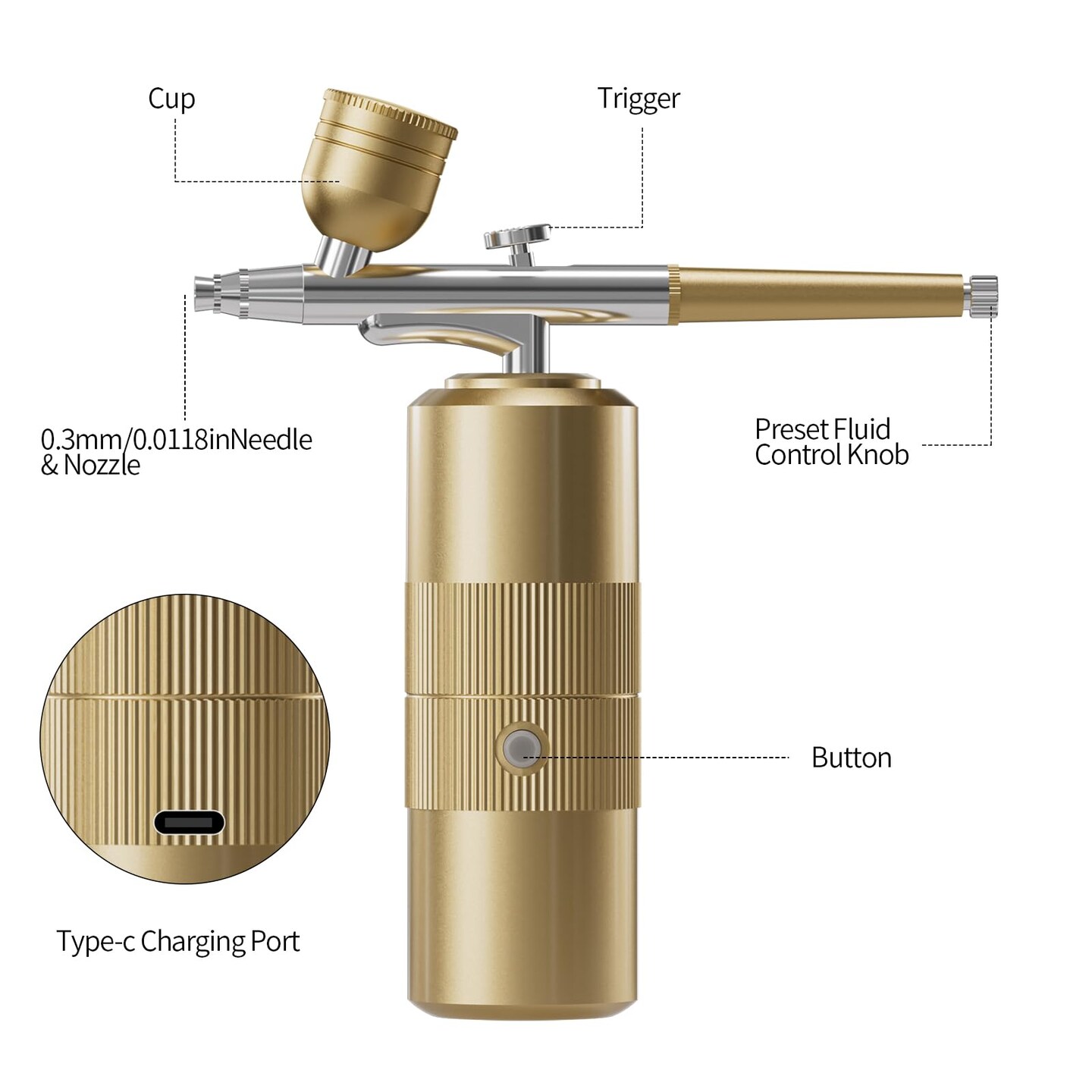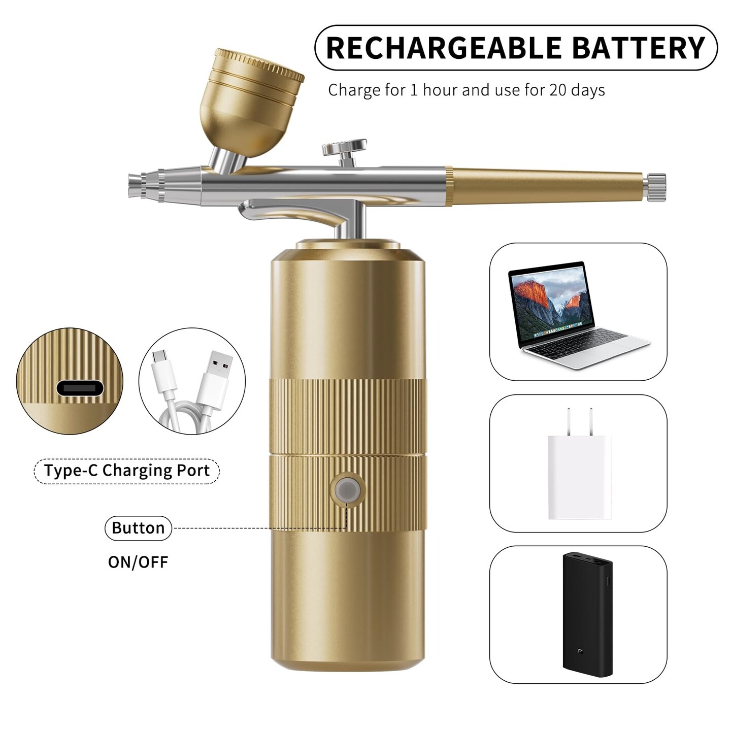 Airbrush Kit with Compressor Portable Airbrush Kit 48PSI High-Pressure Non-Clogging Air Brush Set Cordless Rechargeable with 0.3mm Nozzle and Cleaning Brush for Painting,Nail Art, Makeup (Gold)