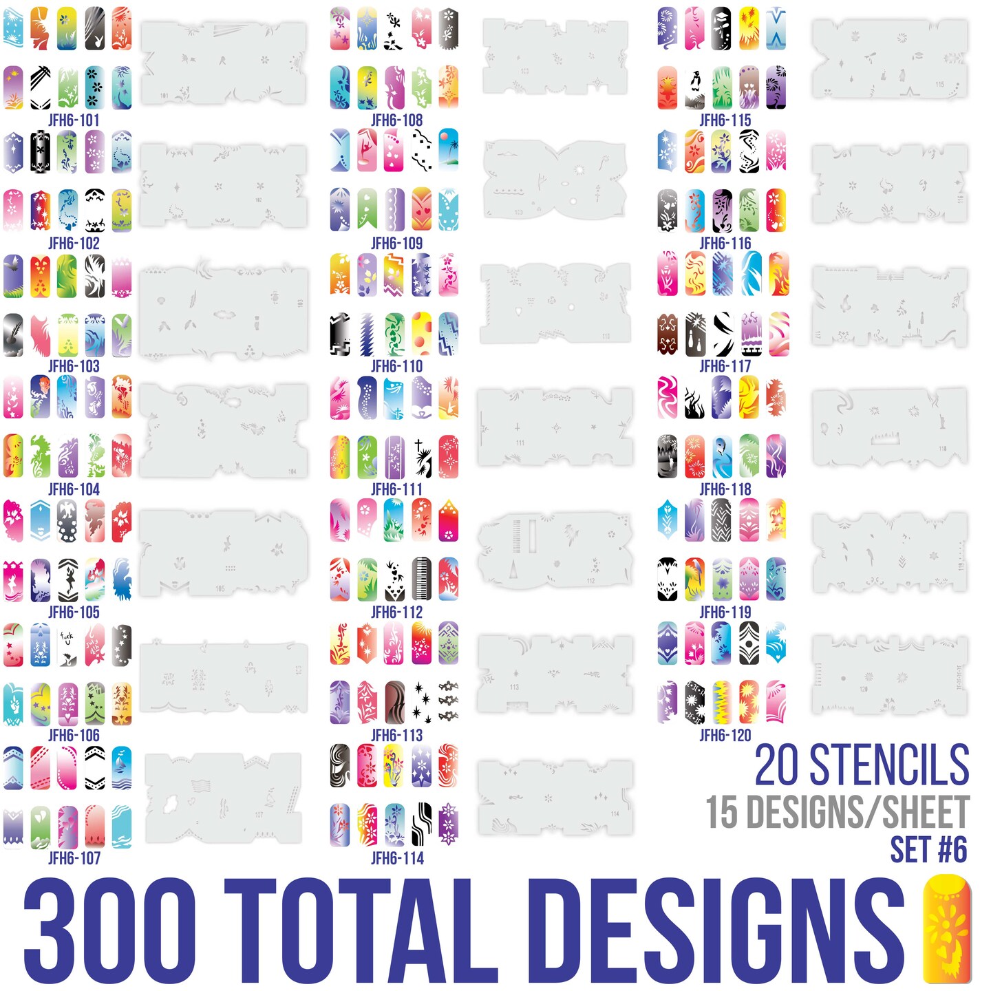 Airbrush Nail Stencils - Nail Art Stencils Set #6: 280 Unique Designs from 20 Individual Templates