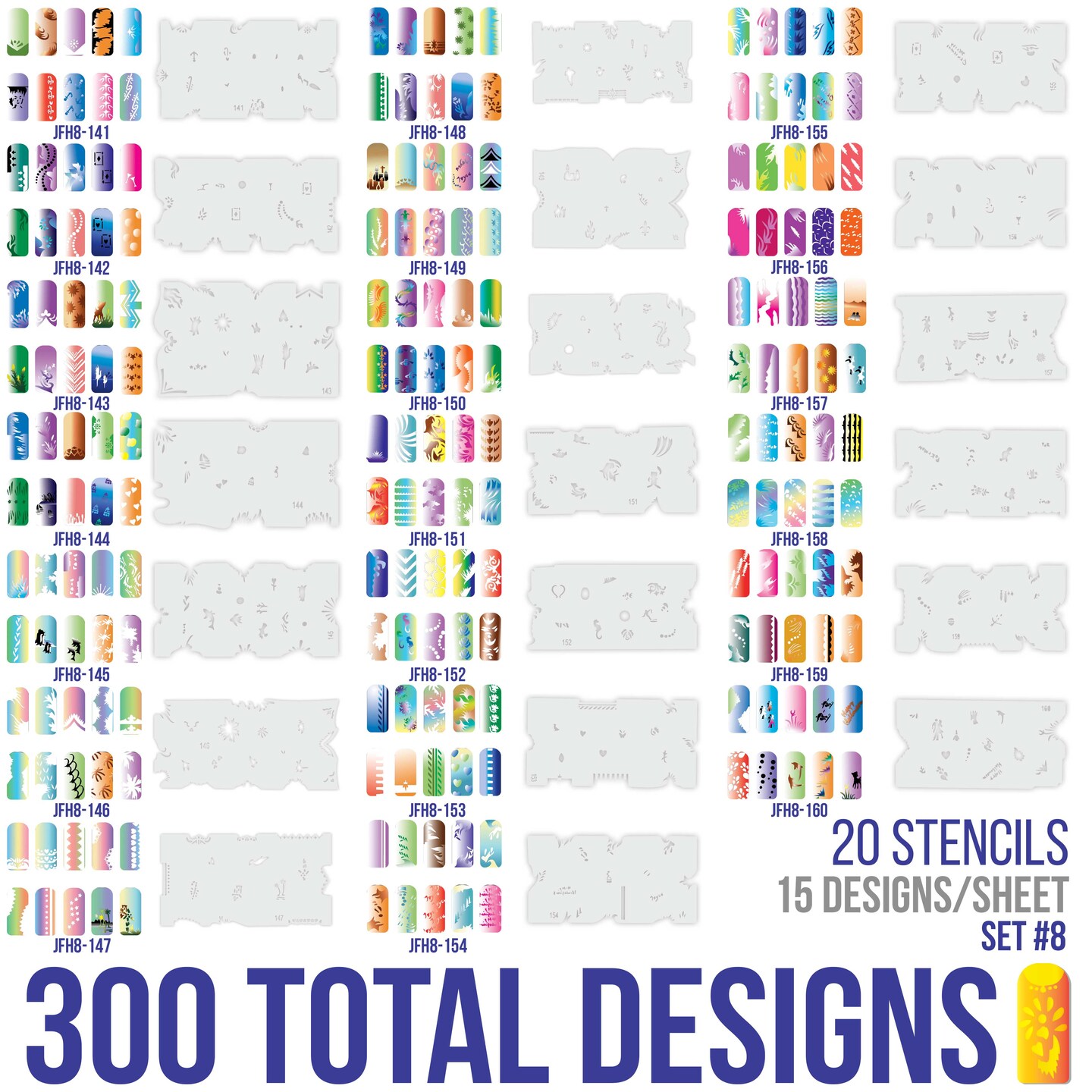 Airbrush Nail Stencils - Nail Art Stencils Set #8: 320 Unique Designs from 20 Individual Templates