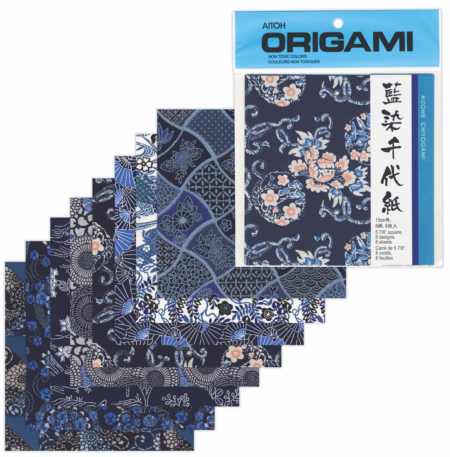 Aitoh Origami Paper 5.87"X5.87" 8/Pkg-Aizome Chiyogami