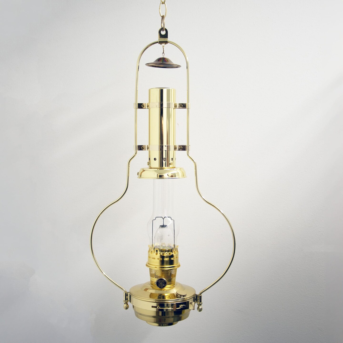 Aladdin Brass Hanging Oil Lamp with Larger Fuel Tank, Genie III Chandelier for Homesteaders or Emergencies, 28 in tall, Brass Trim