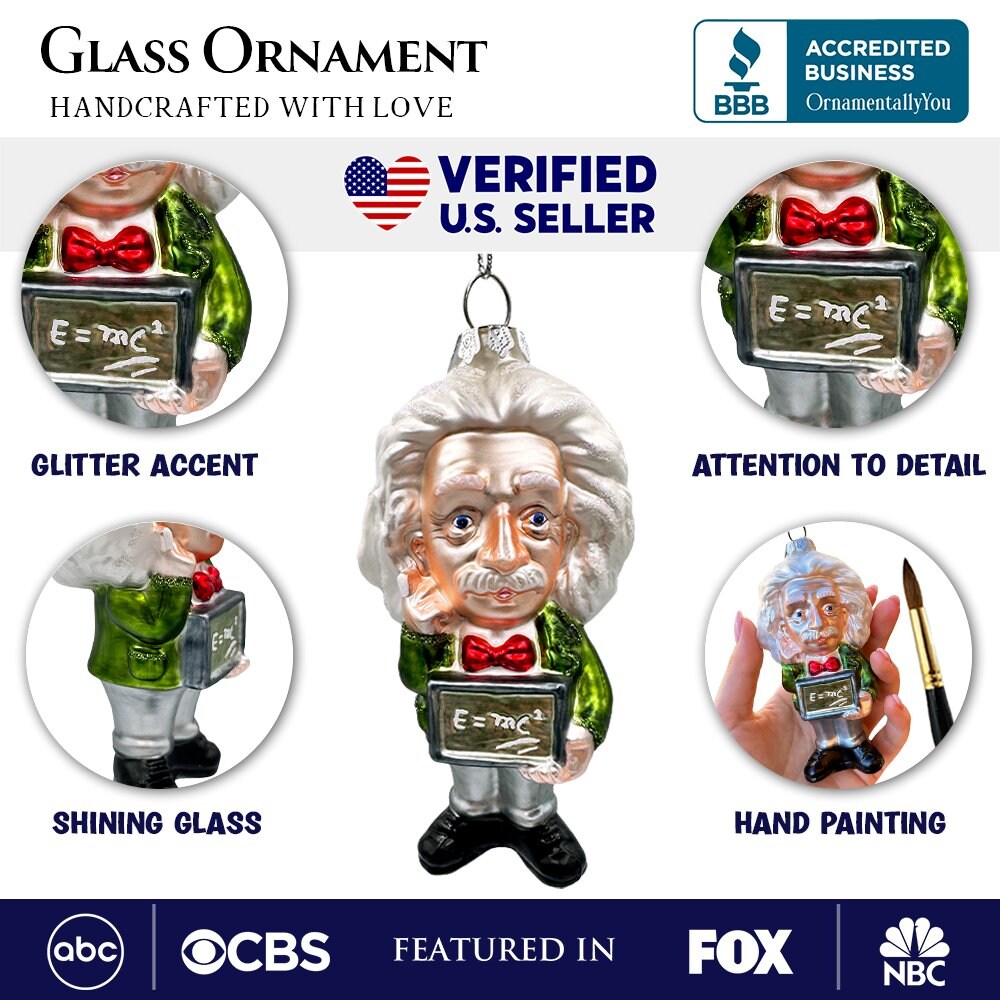 Albert Einstein Handcrafted Glass Ornament, Science and Physics Themed Christmas Gift