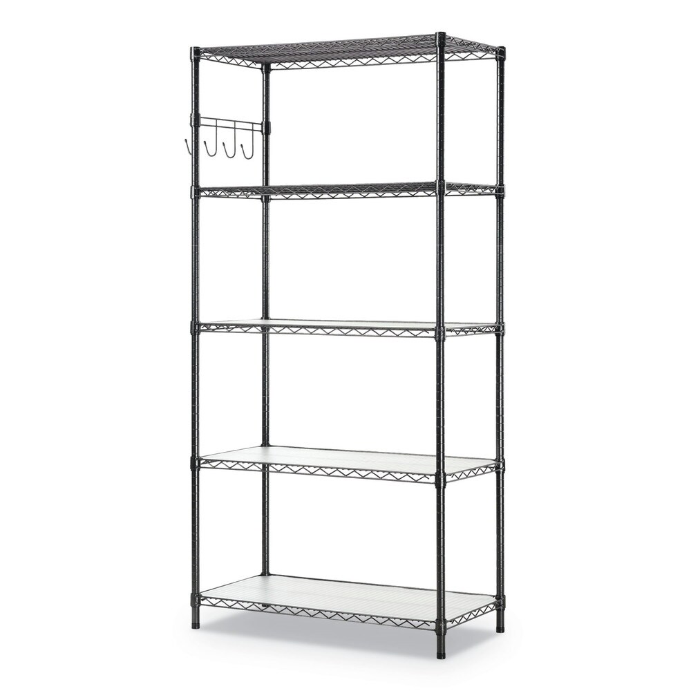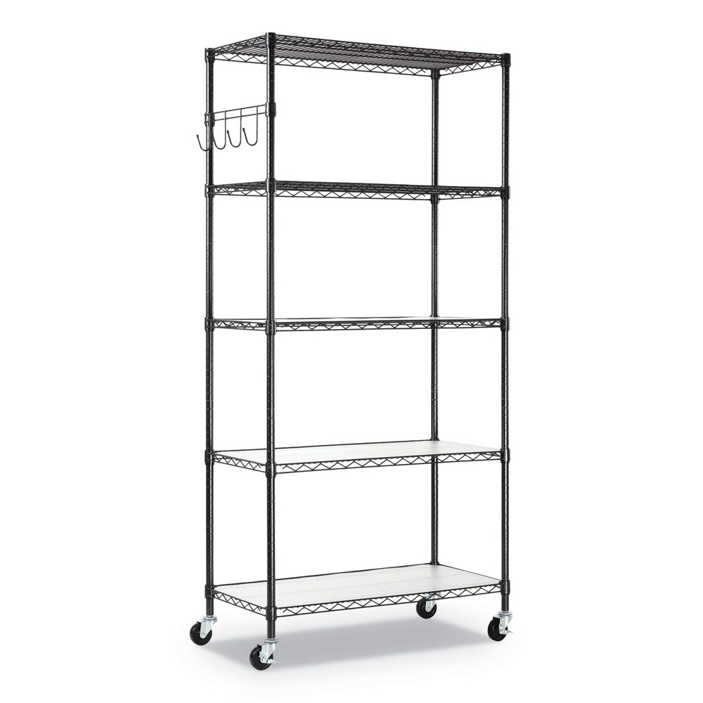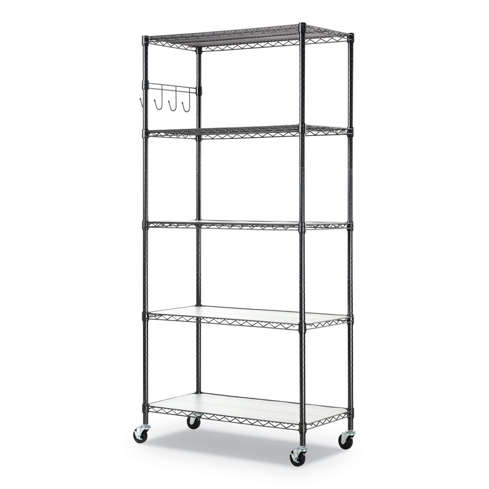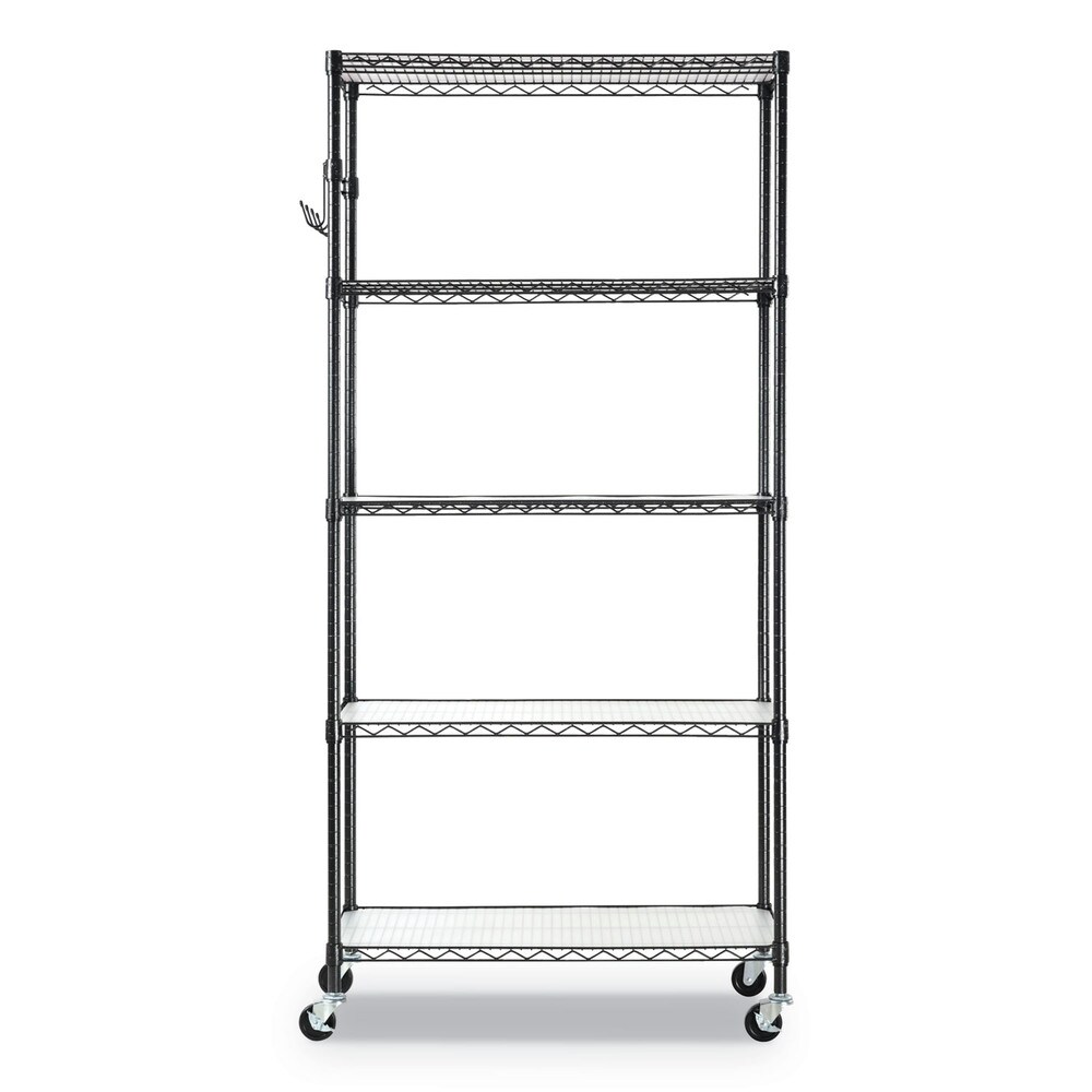 Alera 36 in. x 18 in. x 72 in. 5-Shelf Wire Shelving Kit with Casters and Shelf Liners - Black Anthracite