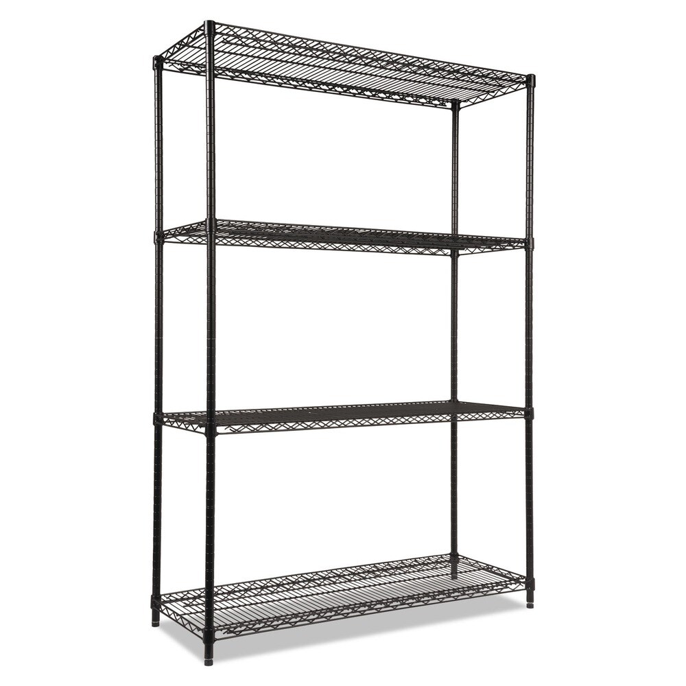 Alera NSF Certified Industrial 48 in. x 18 in. x 72 in. 4-Shelf Wire Shelving Starter Kit - Black