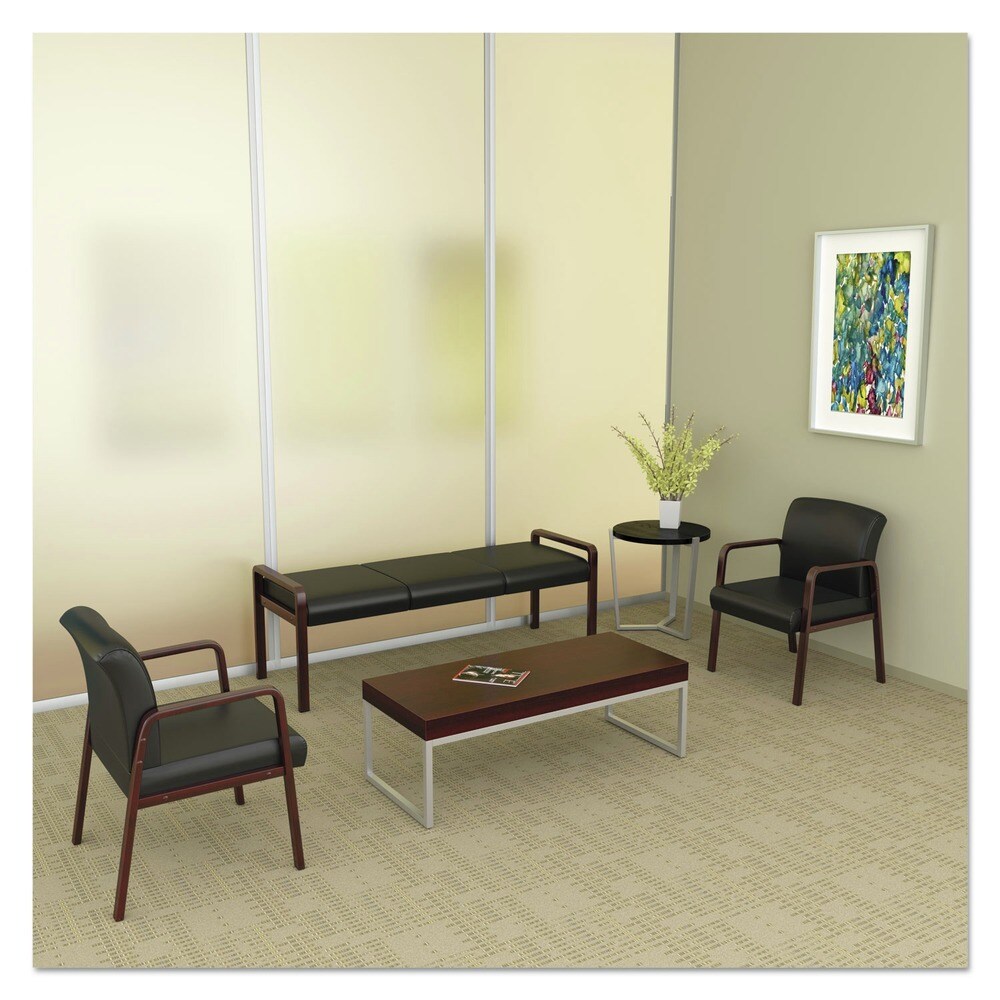 Alera Reception Lounge WL Series 65.75 in. x 22.25 in. x 22.88 in. 3-Seat Bench - Black Seat, Mahogany Base