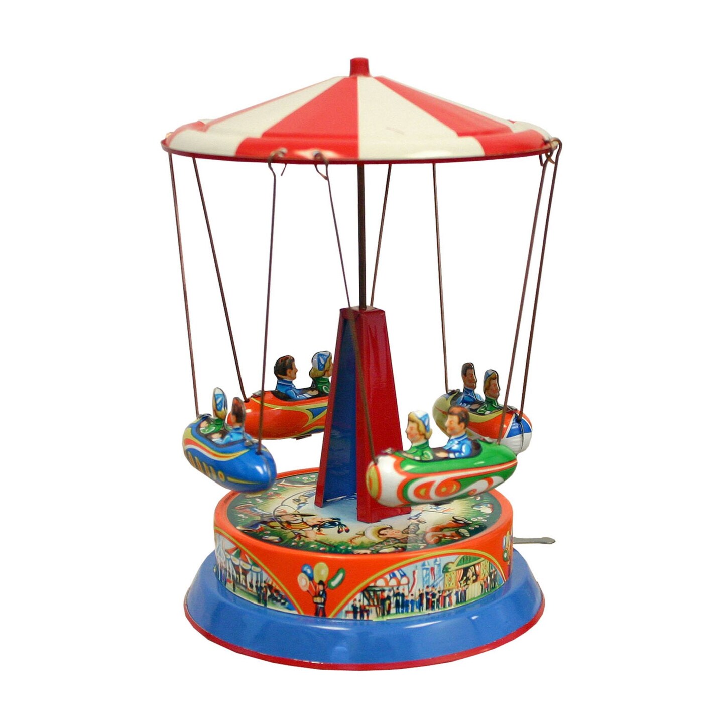 Alexander Taron Holiday Seasonal Decorative German Collectible Tin Toy - Carousel with Rocket Ships On Rods - 7.5"Hx5"Wx5"D