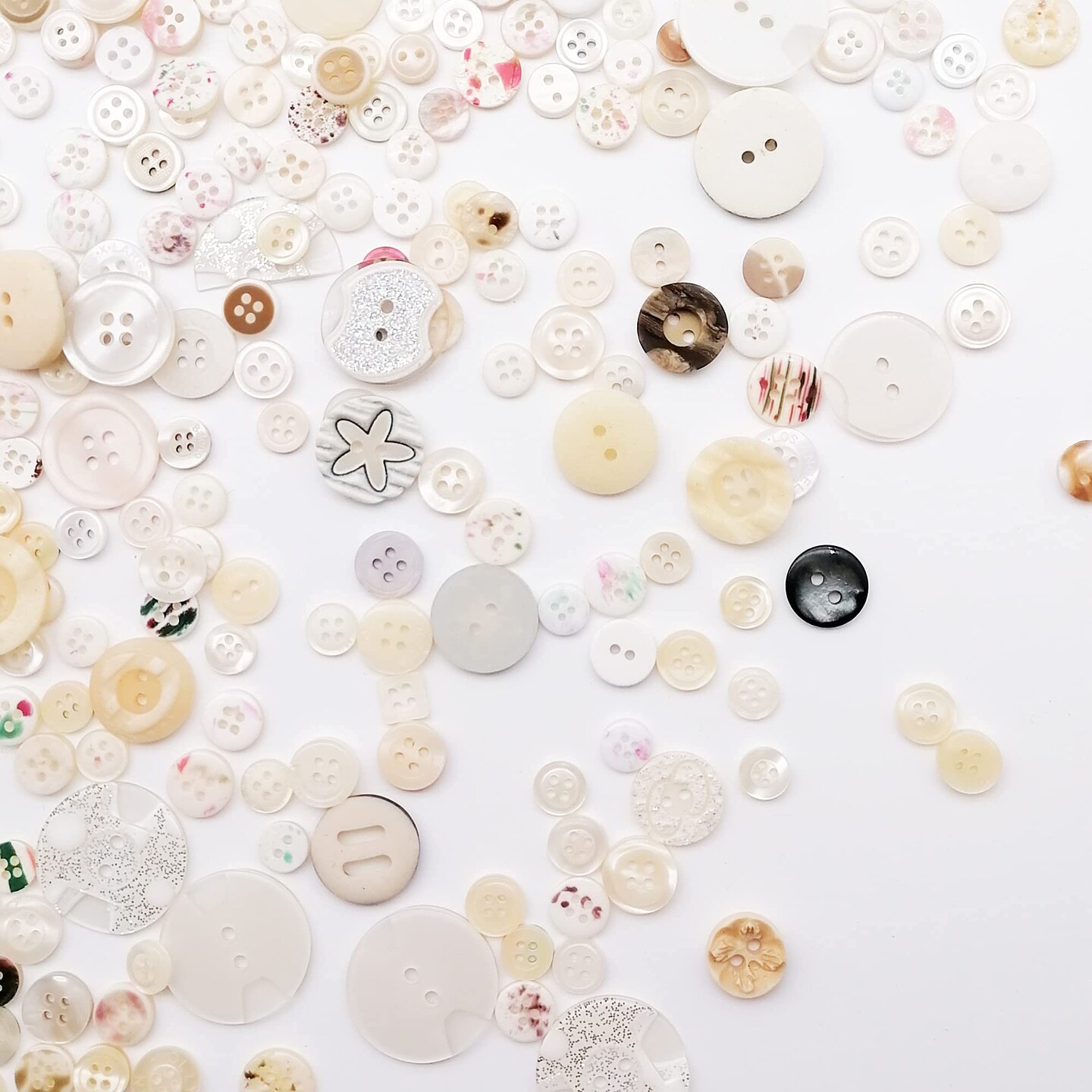 Alfykym 600-700Pcs Shell Buttons for Crafts Assorted White Button Bulk Off White Craft Buttons Assorted Size Buttons for Crafting DIY Crafts Decoration