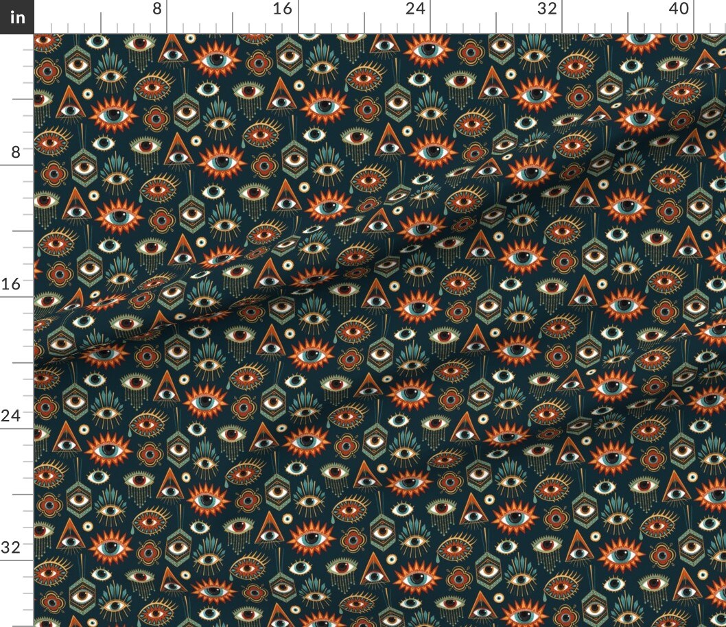 All Eyes Turquoise Luck Magic Mustard Coral Custom Printed Fabric by Spoonflower Various Fabrics by the Yard or Fat Quarter