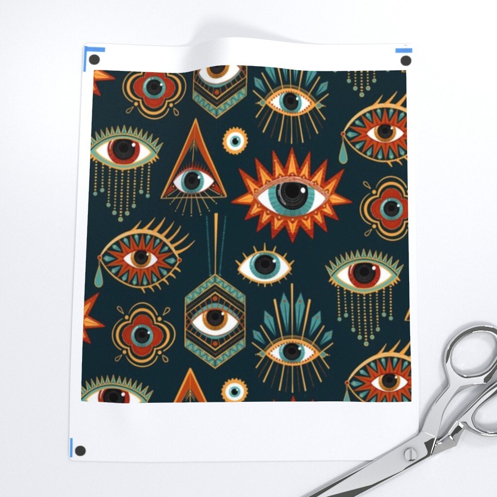 All Eyes Turquoise Luck Magic Mustard Coral Custom Printed Fabric by Spoonflower Various Fabrics by the Yard or Fat Quarter