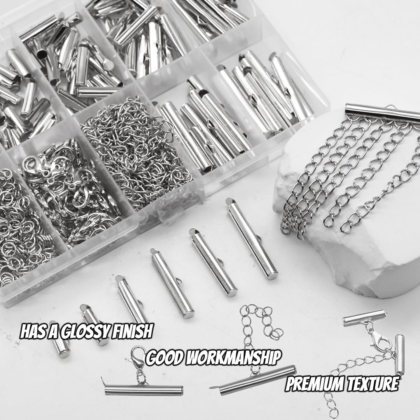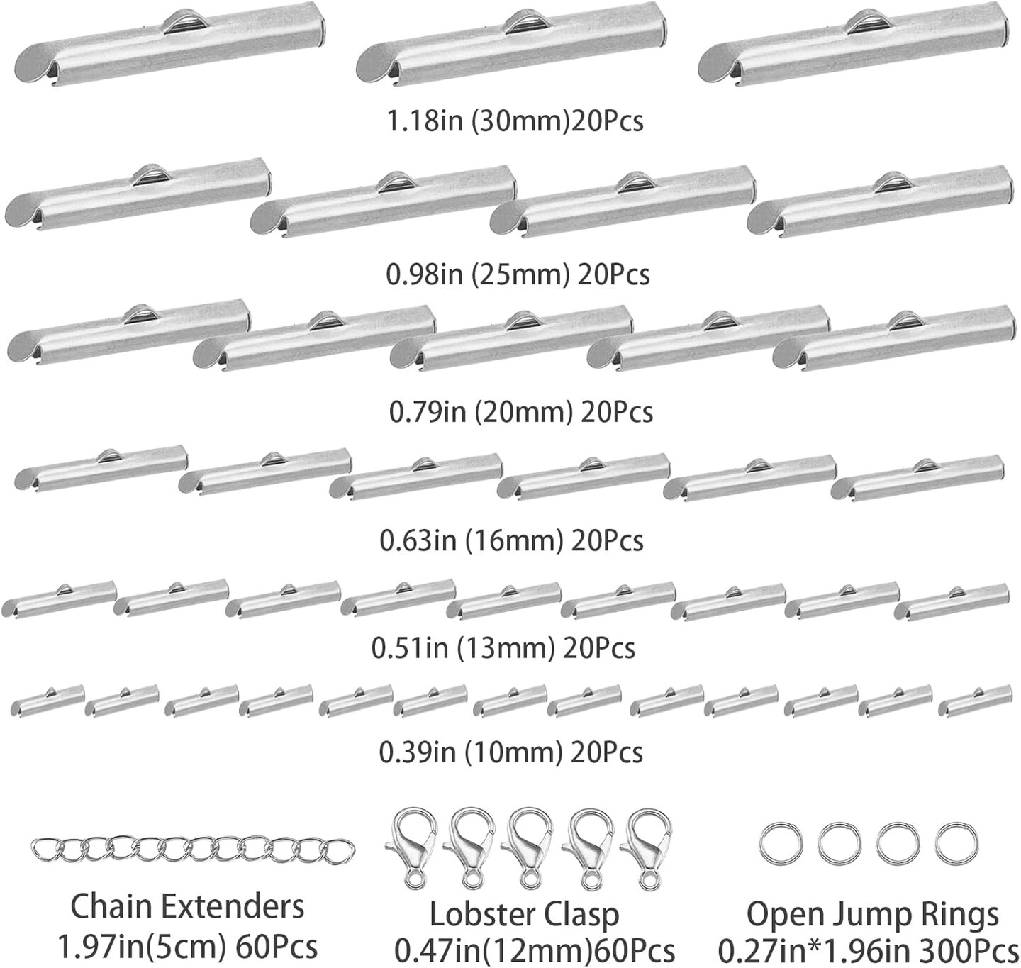 All Size Slider Clasp for Beading Slide Tube Cord for Jewelry Making (Silver) 5 x 3.5 x 0.7 inches