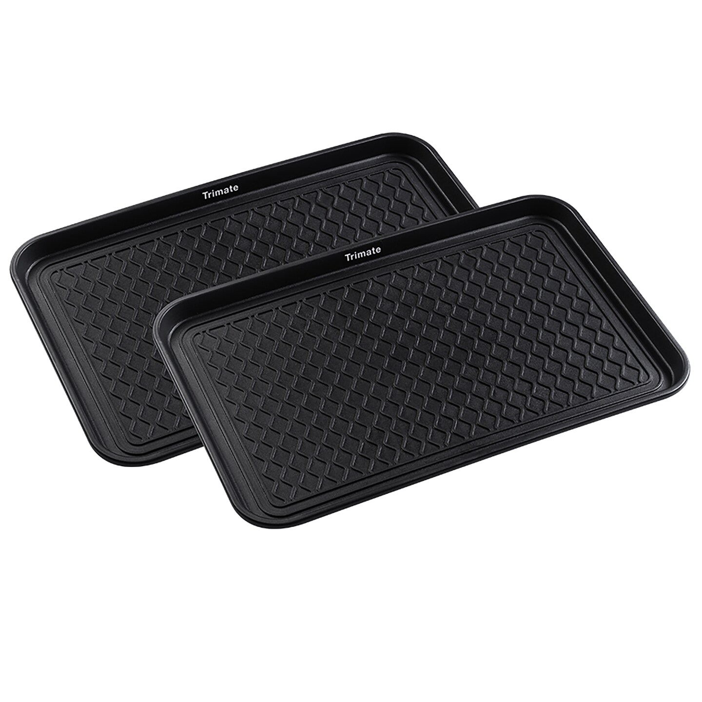 All Weather Boot Tray, 2 Pack by Trimate -Water Resistant Plastic, Multi-Purpose for Shoes, Pet Feeding Trays, Garden-Mudroom Entryway, Garage, Indoor or Outdoor -- Medium, 24"x16" -- (Black)