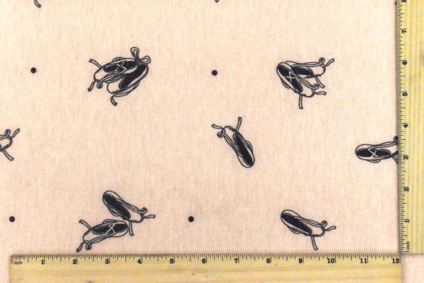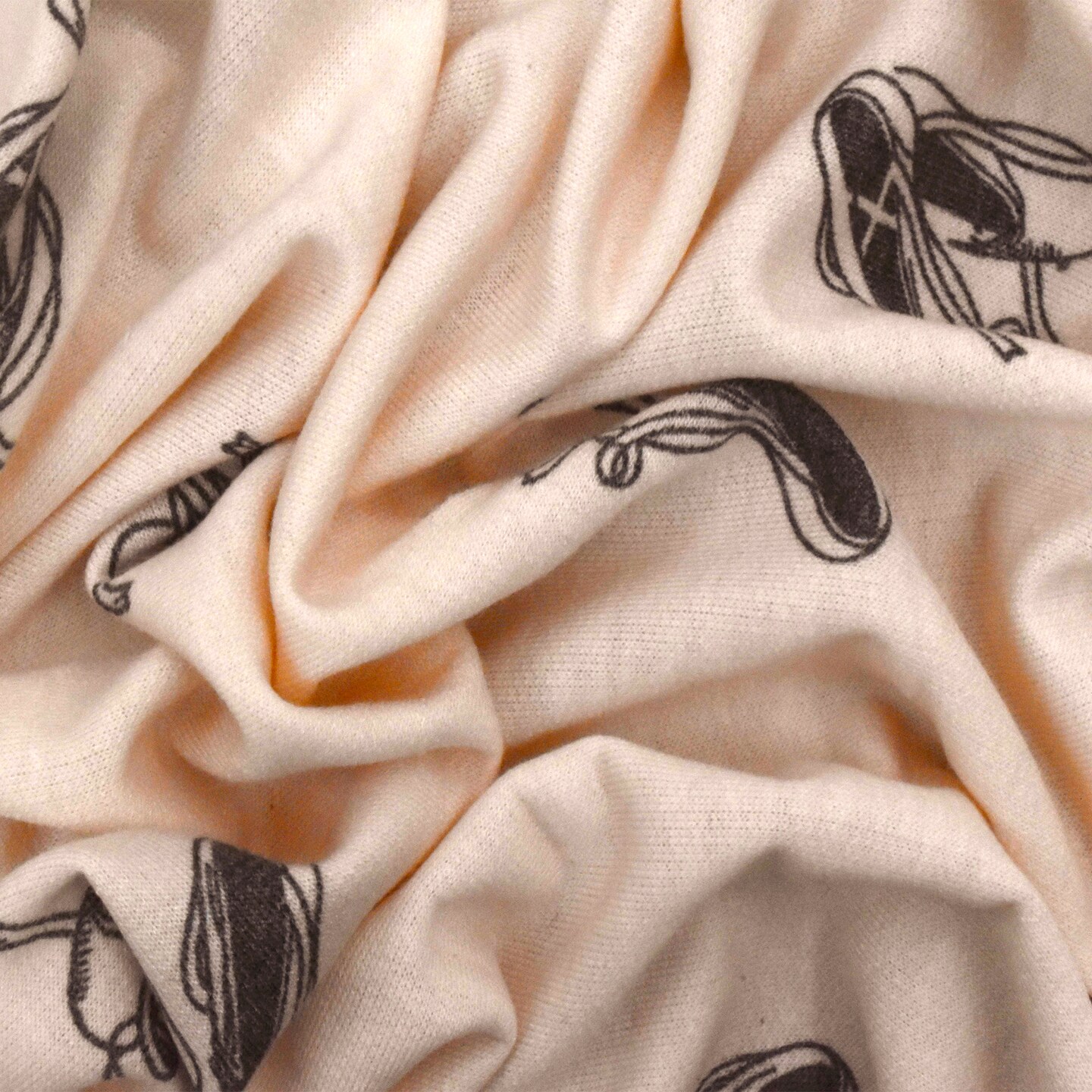 Almond Pink-Black Ballet Flat Printed Stretch Baby French Terry Knit Fabric By the Yard
