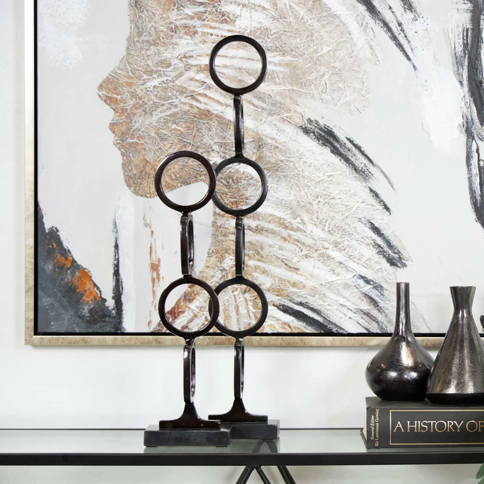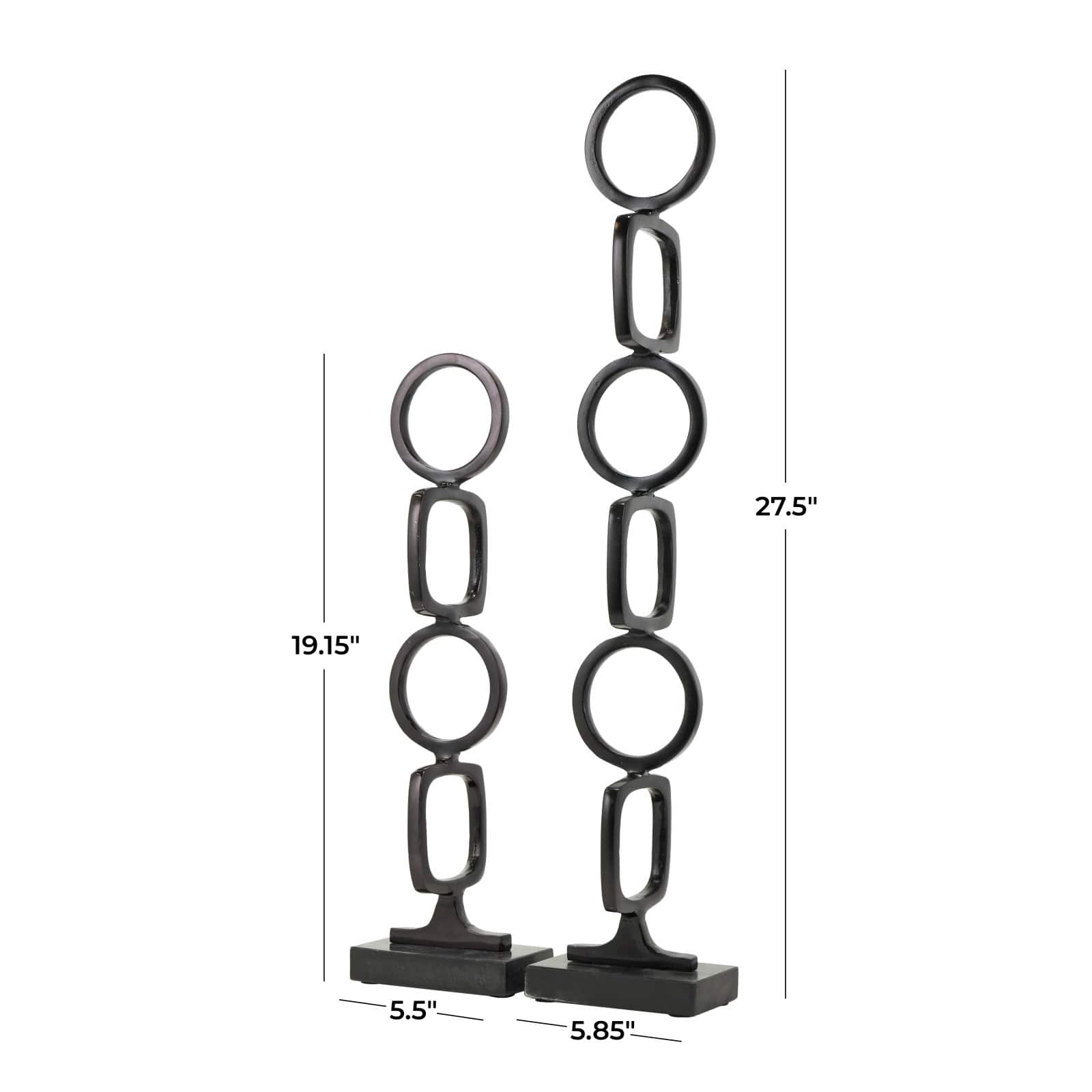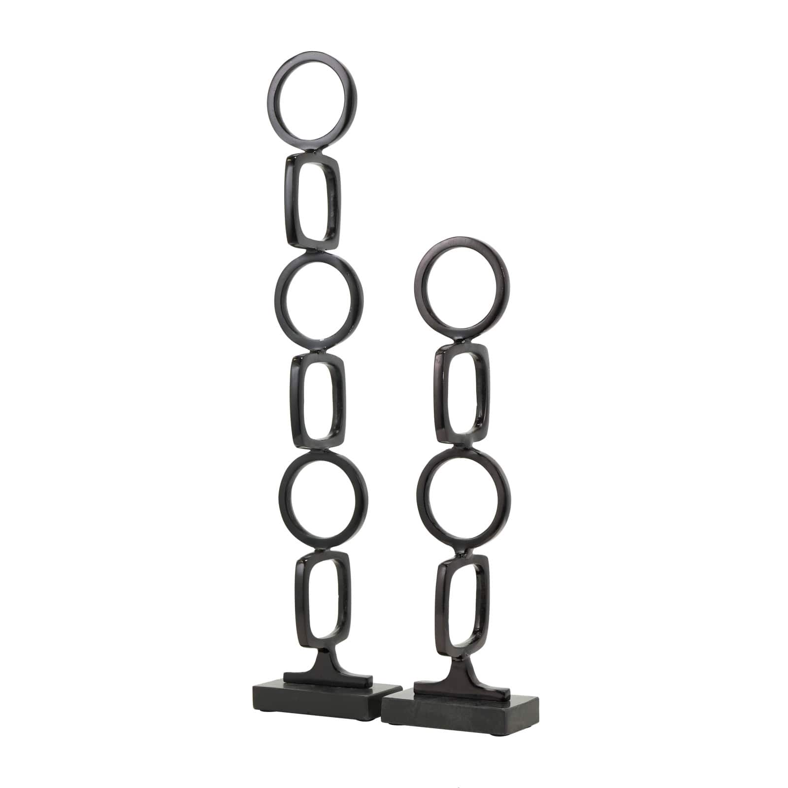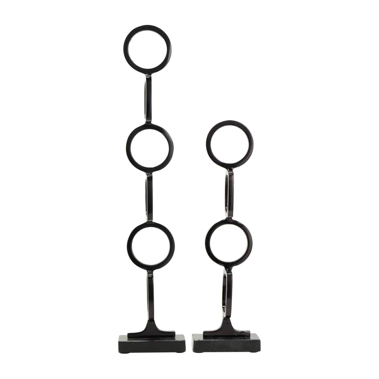 Aluminum Abstract Stacked Geometric Rings Sculpture with Marble Base Set