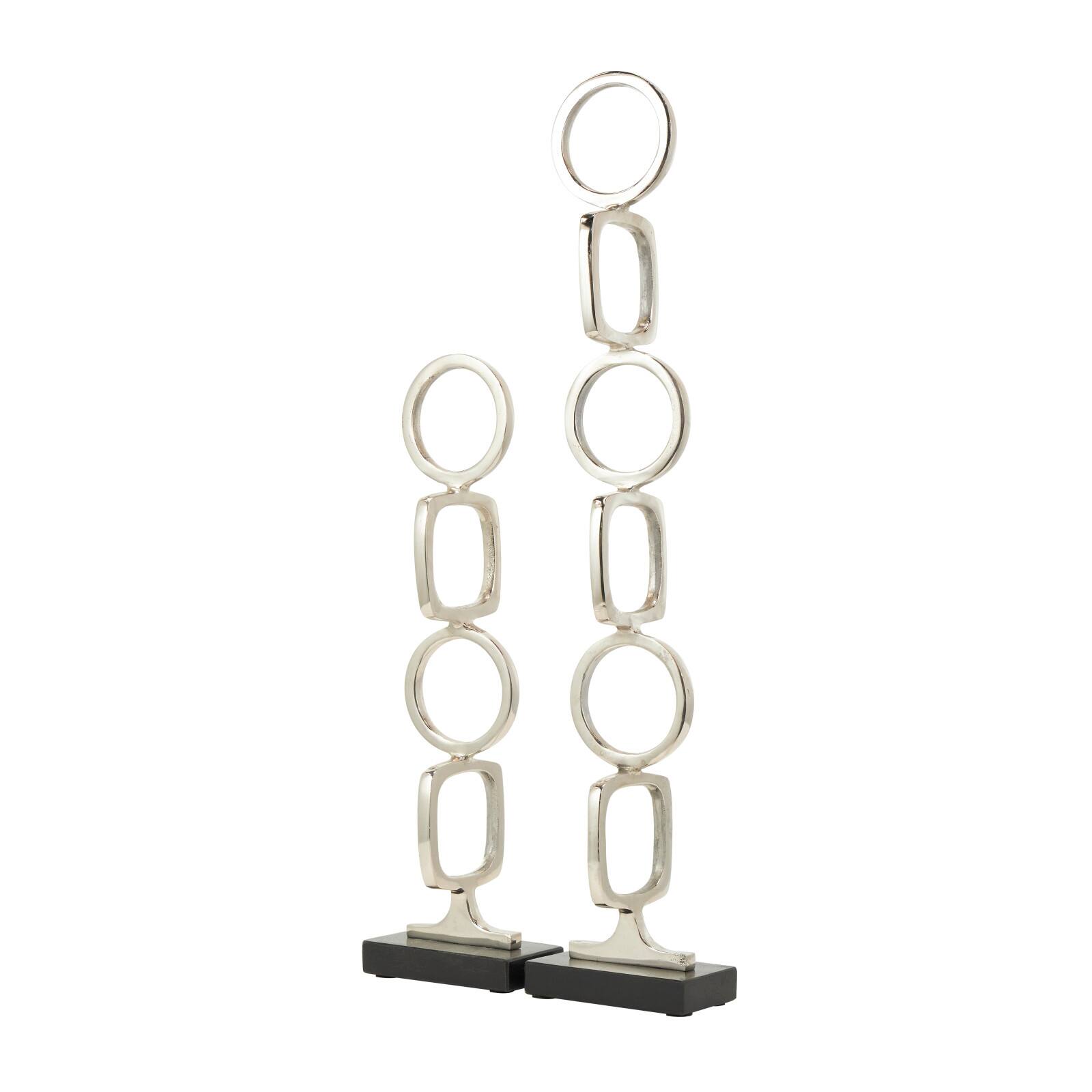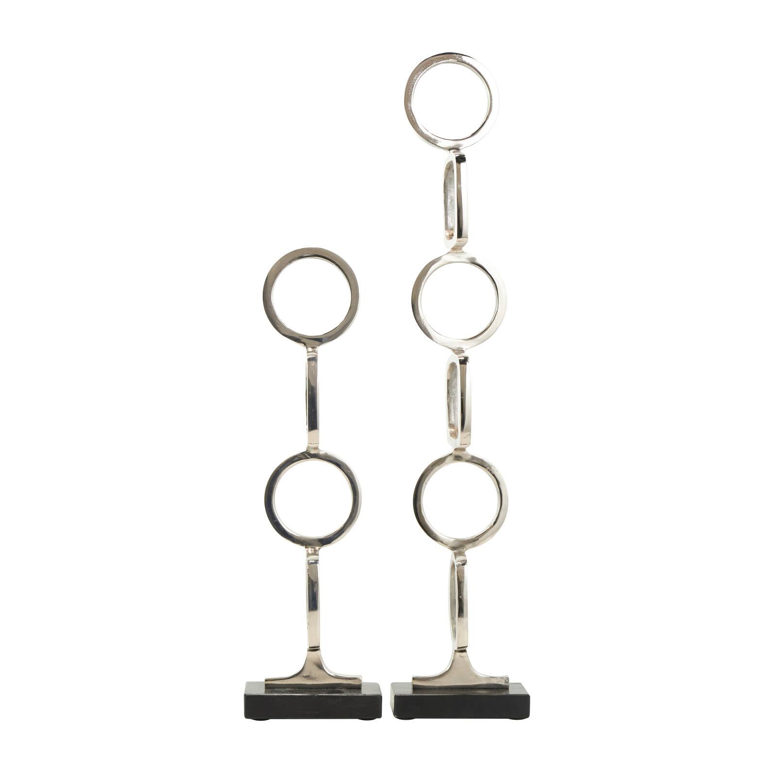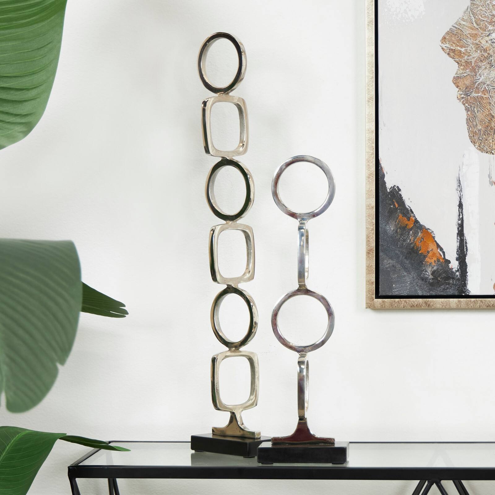 Aluminum Abstract Stacked Geometric Rings Sculpture with Marble Base Set