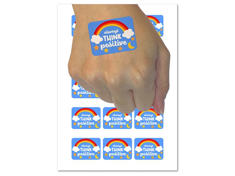 Always Think Positive Rainbow Stars Moon Temporary Tattoo Water Resistant Fake Body Art Set Collection (1 Sheet)