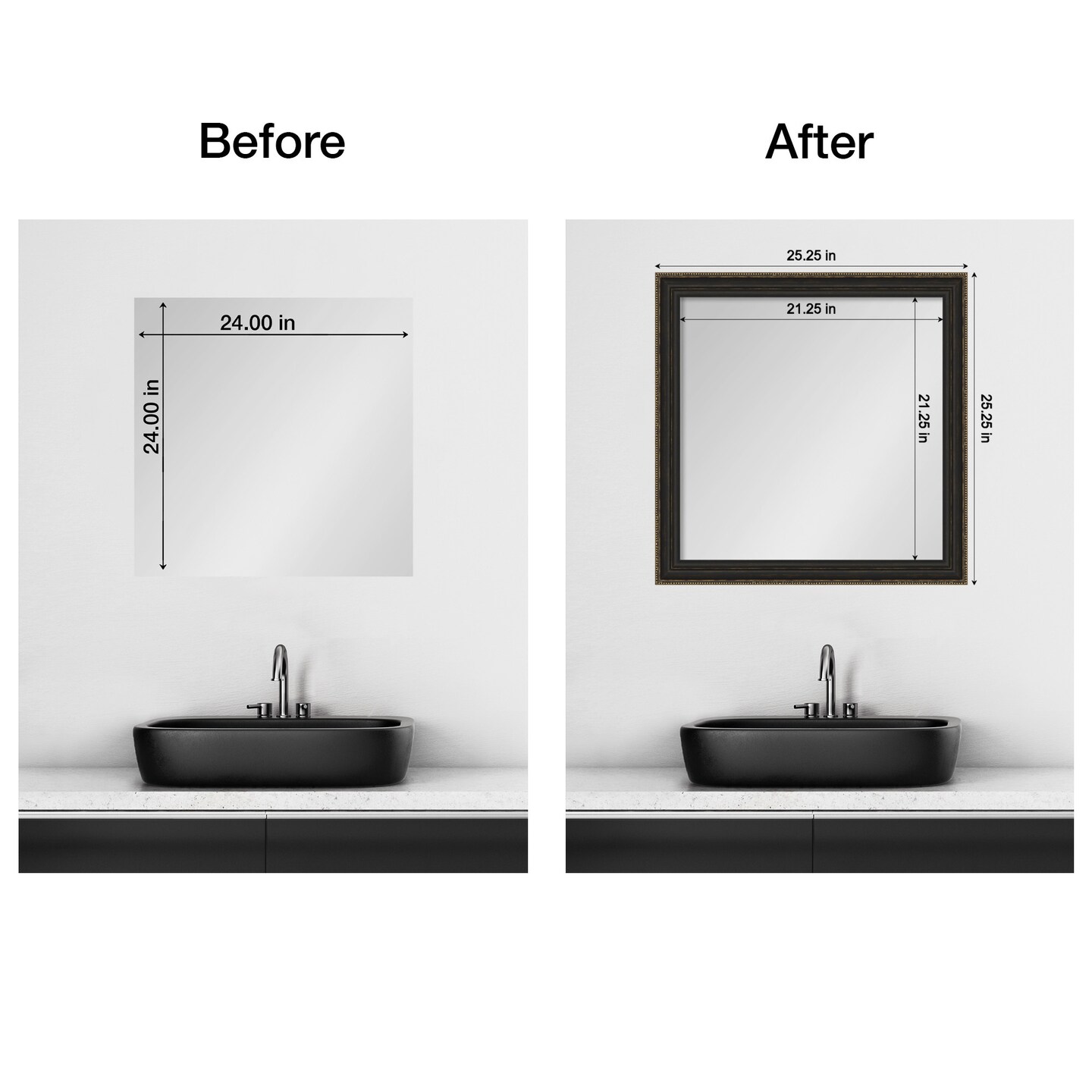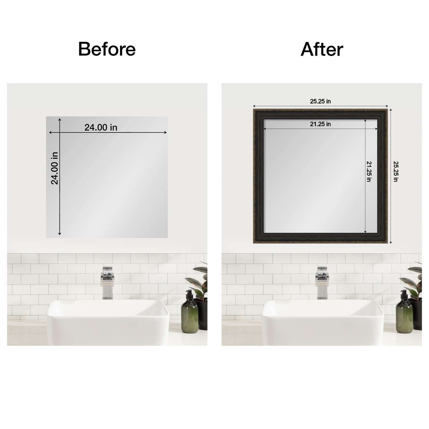 Amanti Art Mirror Makeover Bathroom Mirror Frame Border Kit - Fully Assembled Peel and Stick Frame - Mirror NOT Included - Accent Bronze Narrow Trim