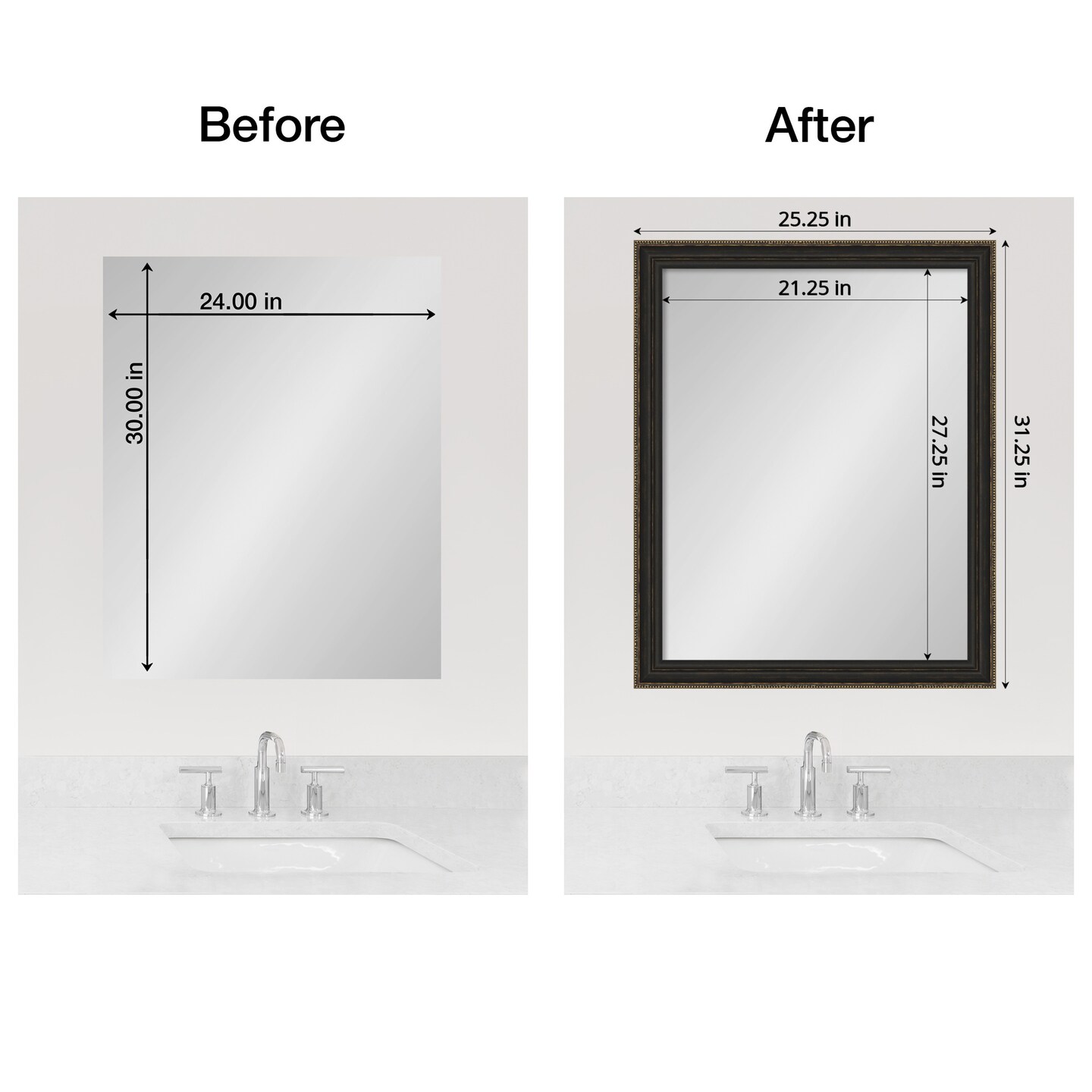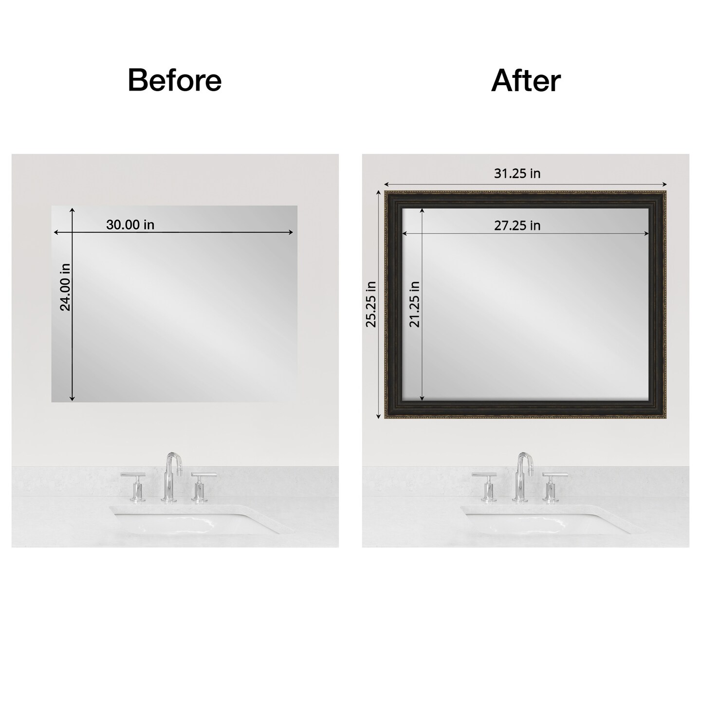 Amanti Art Mirror Makeover Bathroom Mirror Frame Border Kit - Fully Assembled Peel and Stick Frame - Mirror NOT Included - Accent Bronze Narrow Trim
