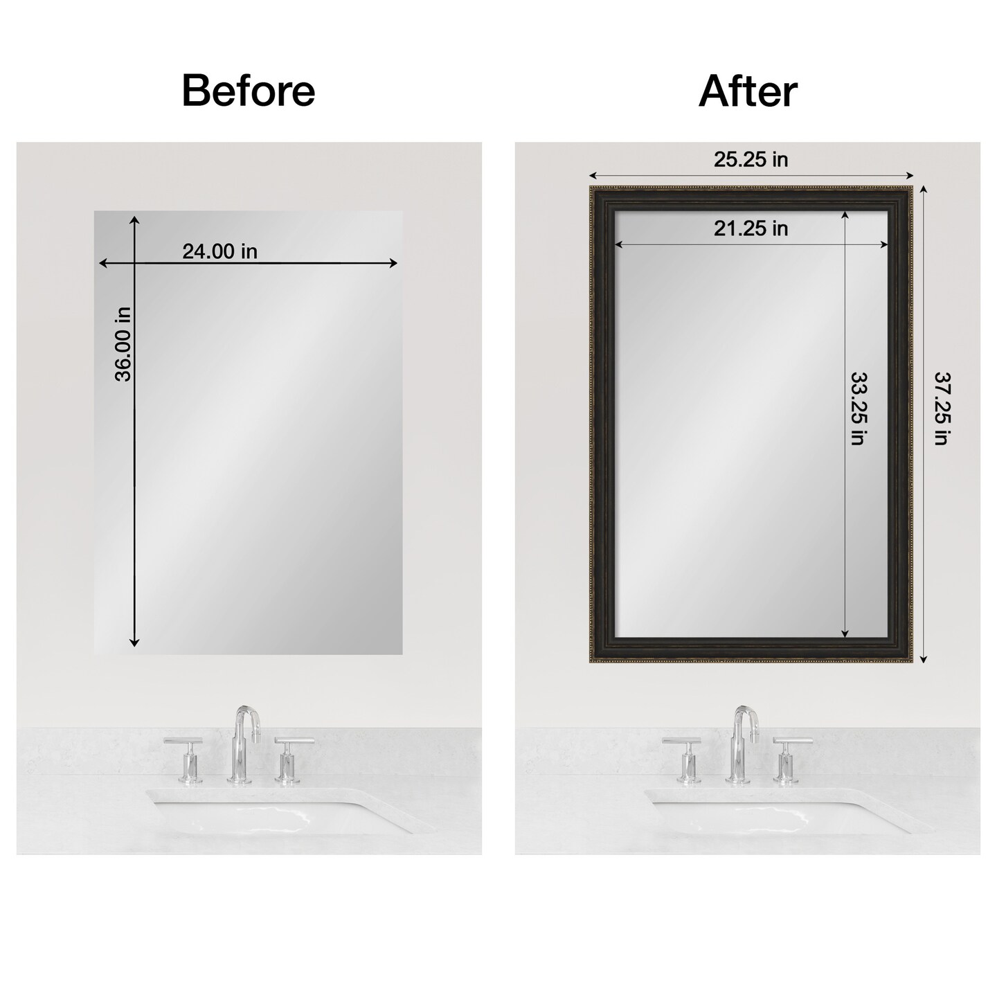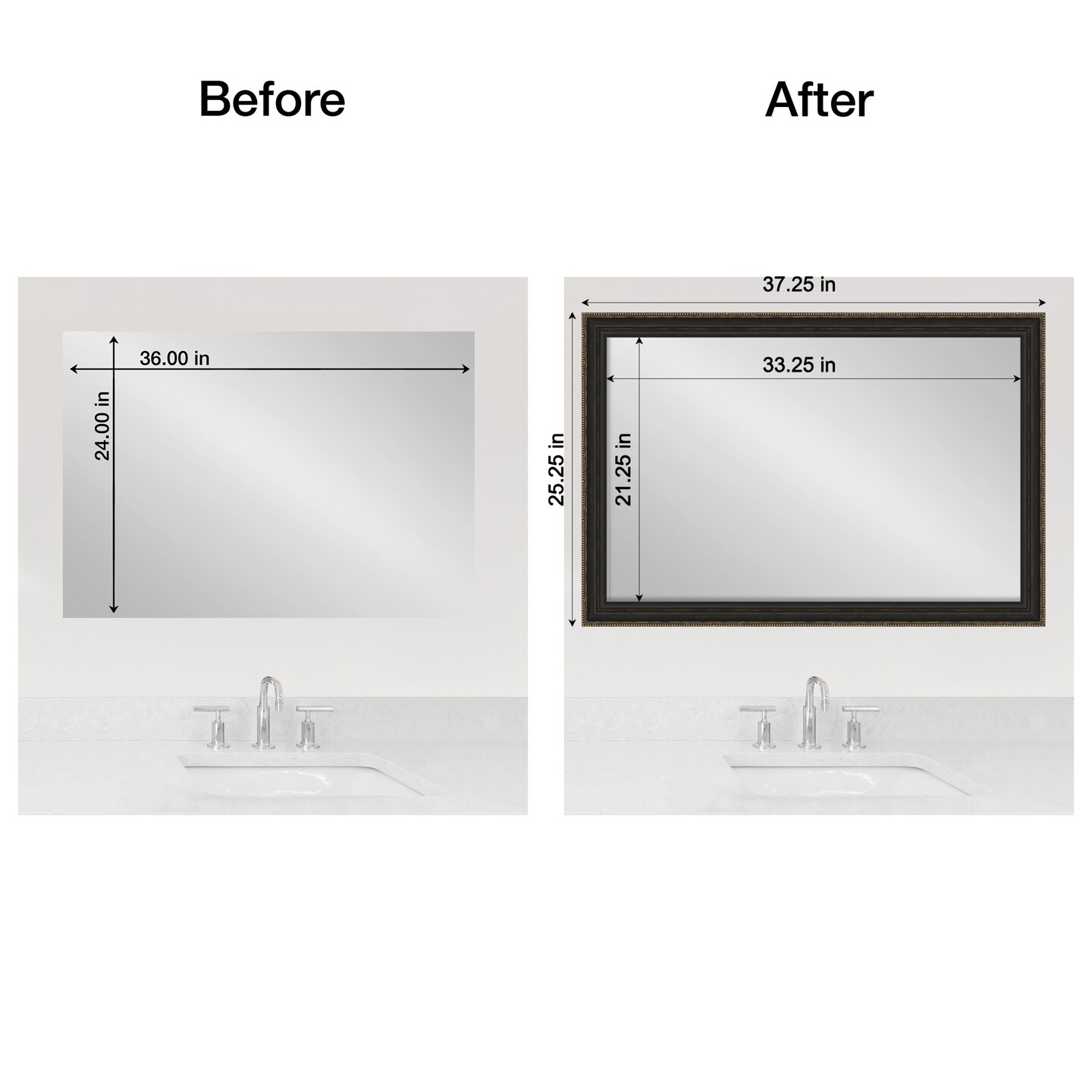 Amanti Art Mirror Makeover Bathroom Mirror Frame Border Kit - Fully Assembled Peel and Stick Frame - Mirror NOT Included - Accent Bronze Narrow Trim