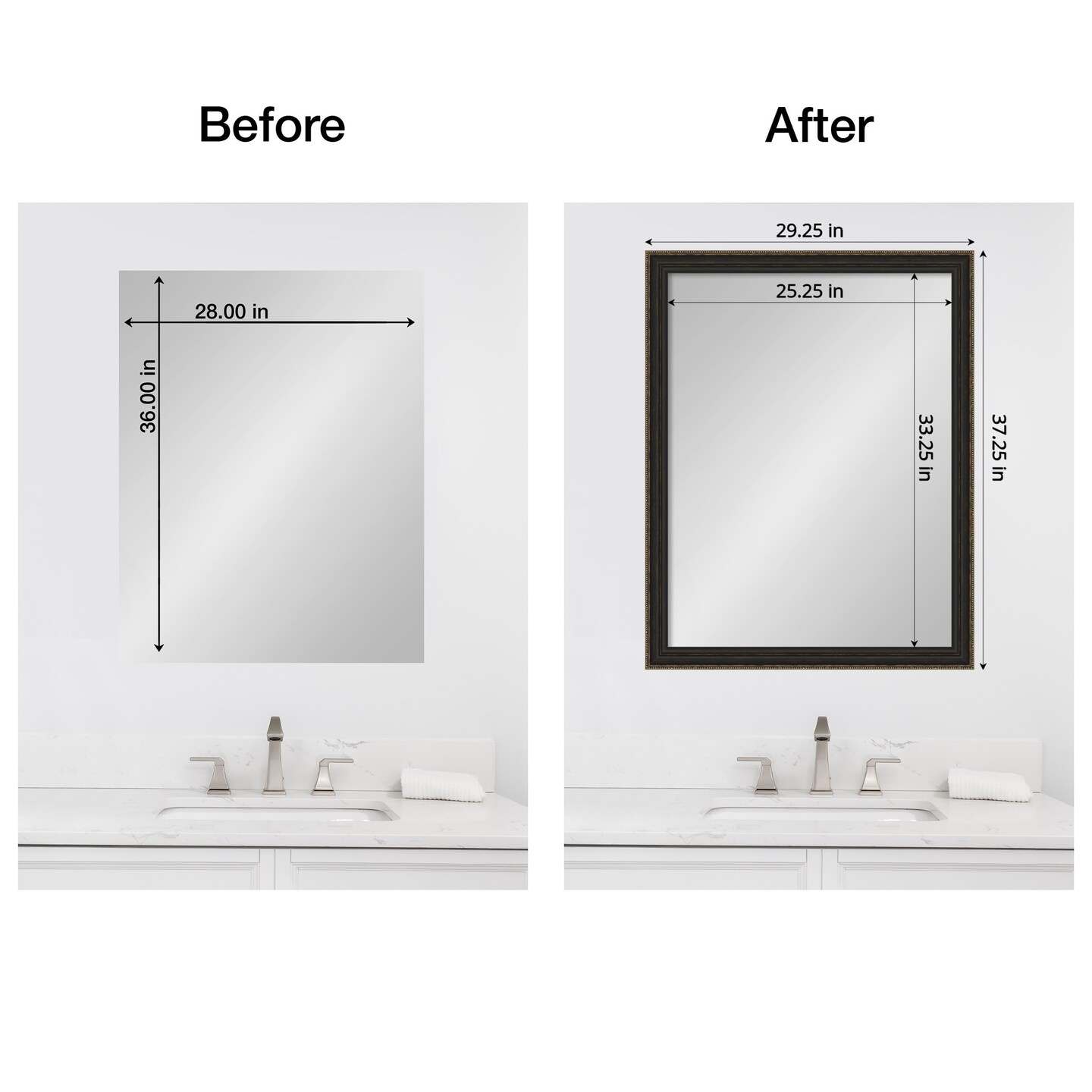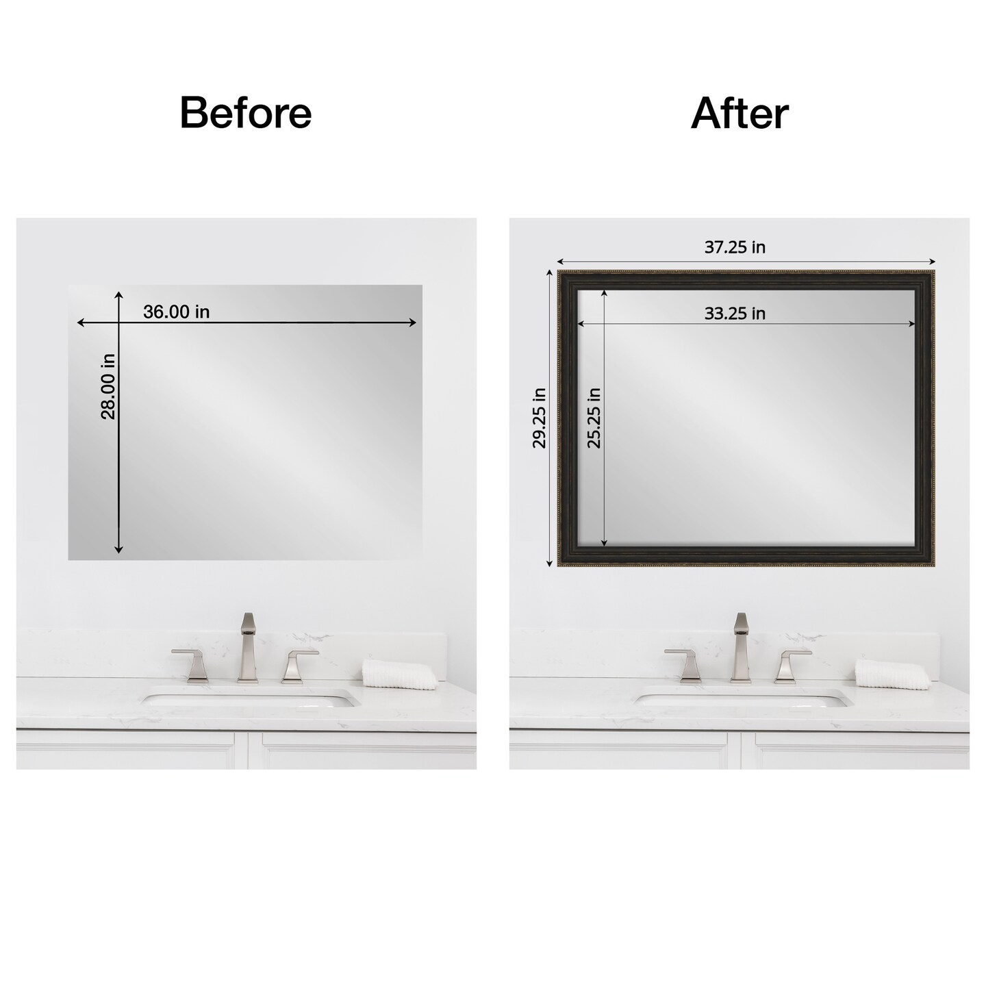 Amanti Art Mirror Makeover Bathroom Mirror Frame Border Kit - Fully Assembled Peel and Stick Frame - Mirror NOT Included - Accent Bronze Narrow Trim