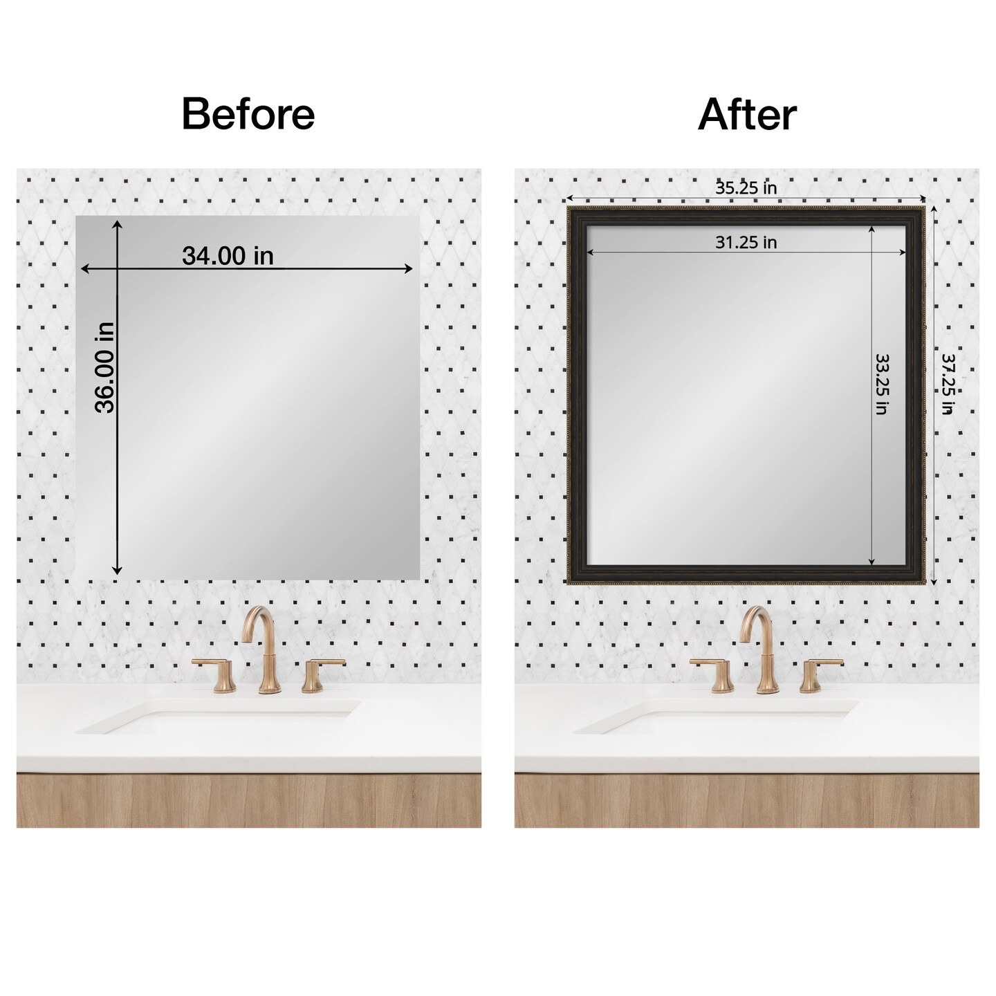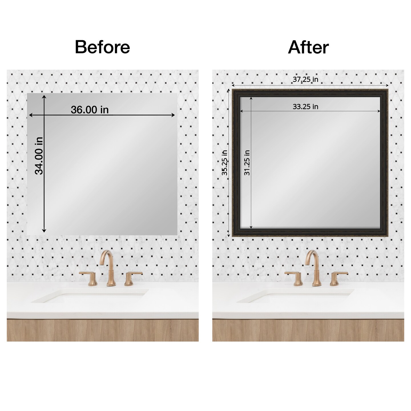 Amanti Art Mirror Makeover Bathroom Mirror Frame Border Kit - Fully Assembled Peel and Stick Frame - Mirror NOT Included - Accent Bronze Narrow Trim