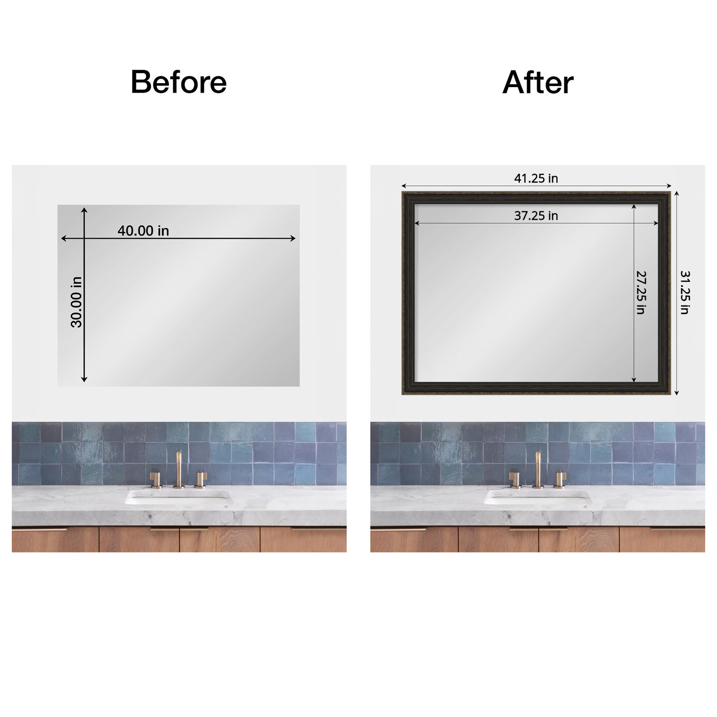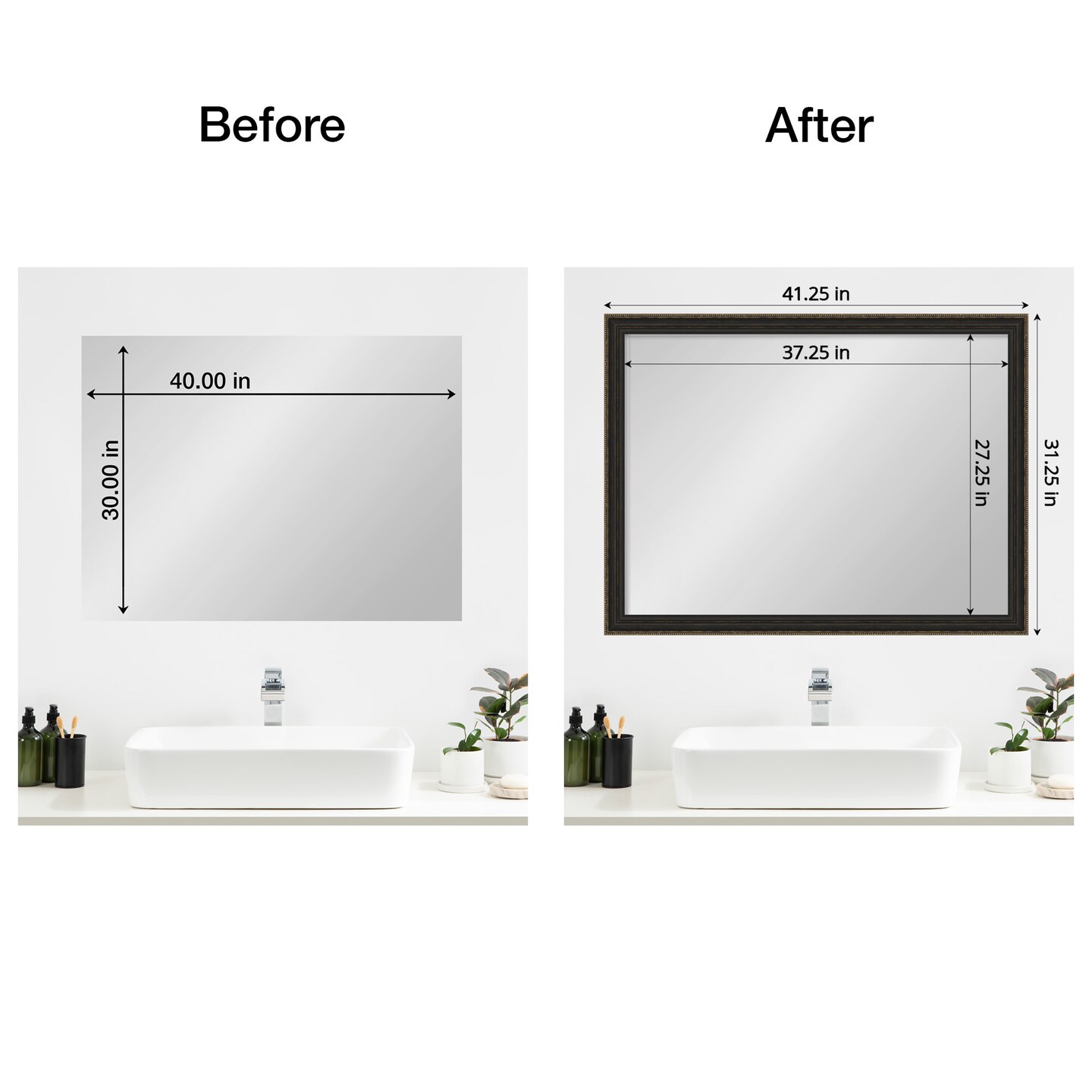Amanti Art Mirror Makeover Bathroom Mirror Frame Border Kit - Fully Assembled Peel and Stick Frame - Mirror NOT Included - Accent Bronze Narrow Trim