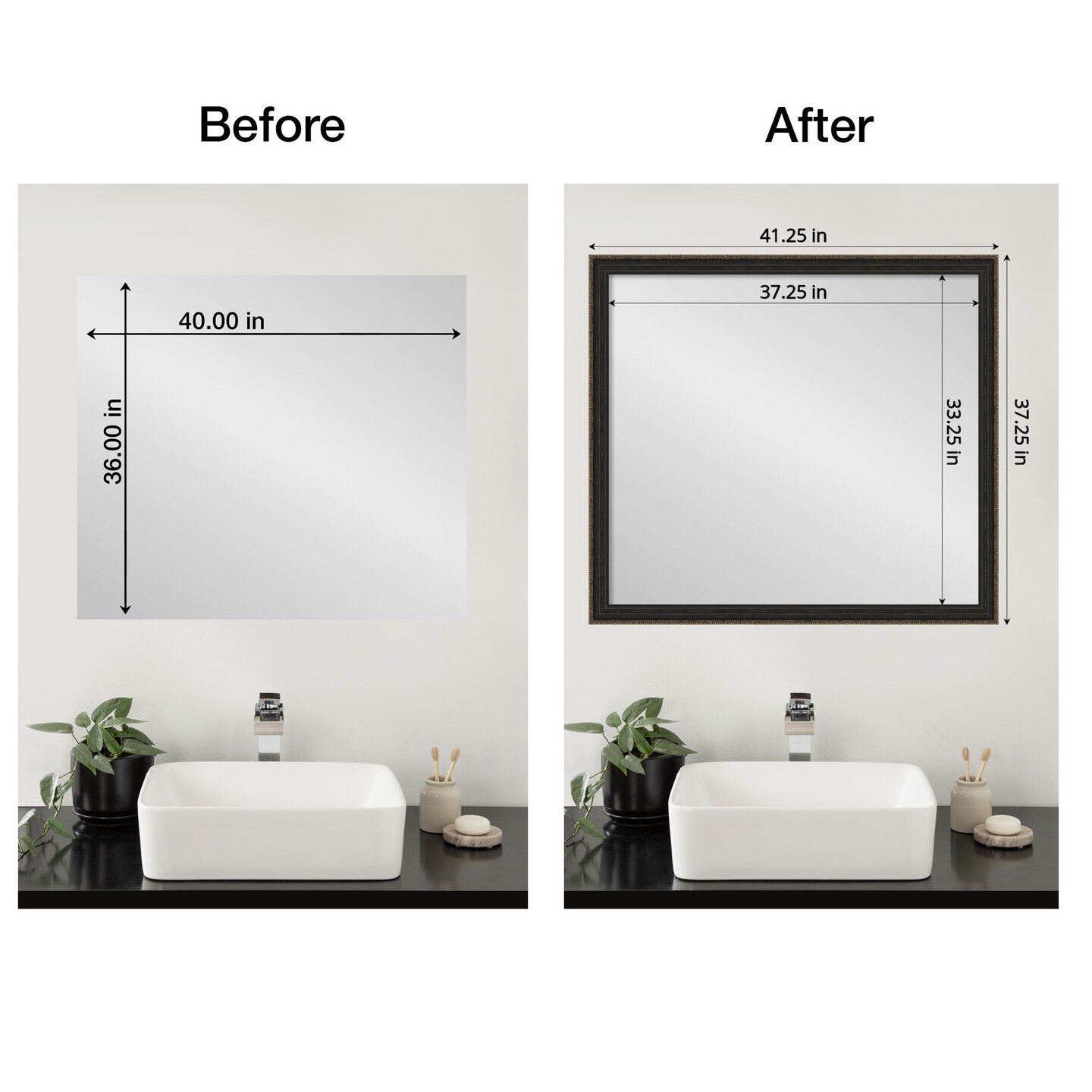 Amanti Art Mirror Makeover Bathroom Mirror Frame Border Kit - Fully Assembled Peel and Stick Frame - Mirror NOT Included - Accent Bronze Narrow Trim