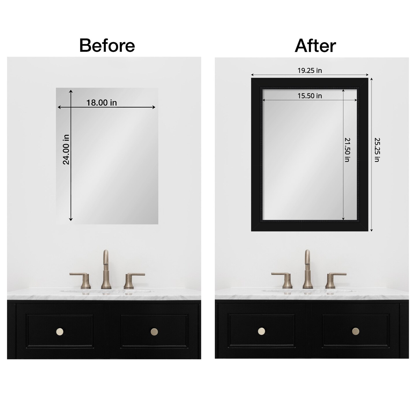 Amanti Art Mirror Makeover Bathroom Mirror Frame Border Kit - Fully Assembled Peel and Stick Frame - Mirror NOT Included - Avon Black Trim