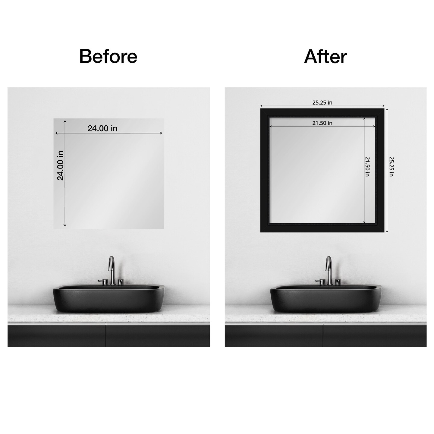 Amanti Art Mirror Makeover Bathroom Mirror Frame Border Kit - Fully Assembled Peel and Stick Frame - Mirror NOT Included - Avon Black Trim