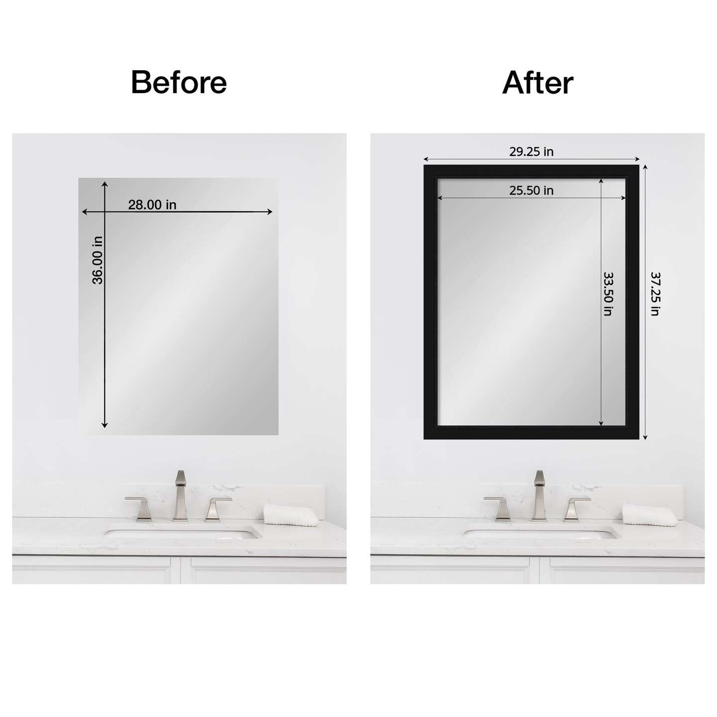 Amanti Art Mirror Makeover Bathroom Mirror Frame Border Kit - Fully Assembled Peel and Stick Frame - Mirror NOT Included - Avon Black Trim