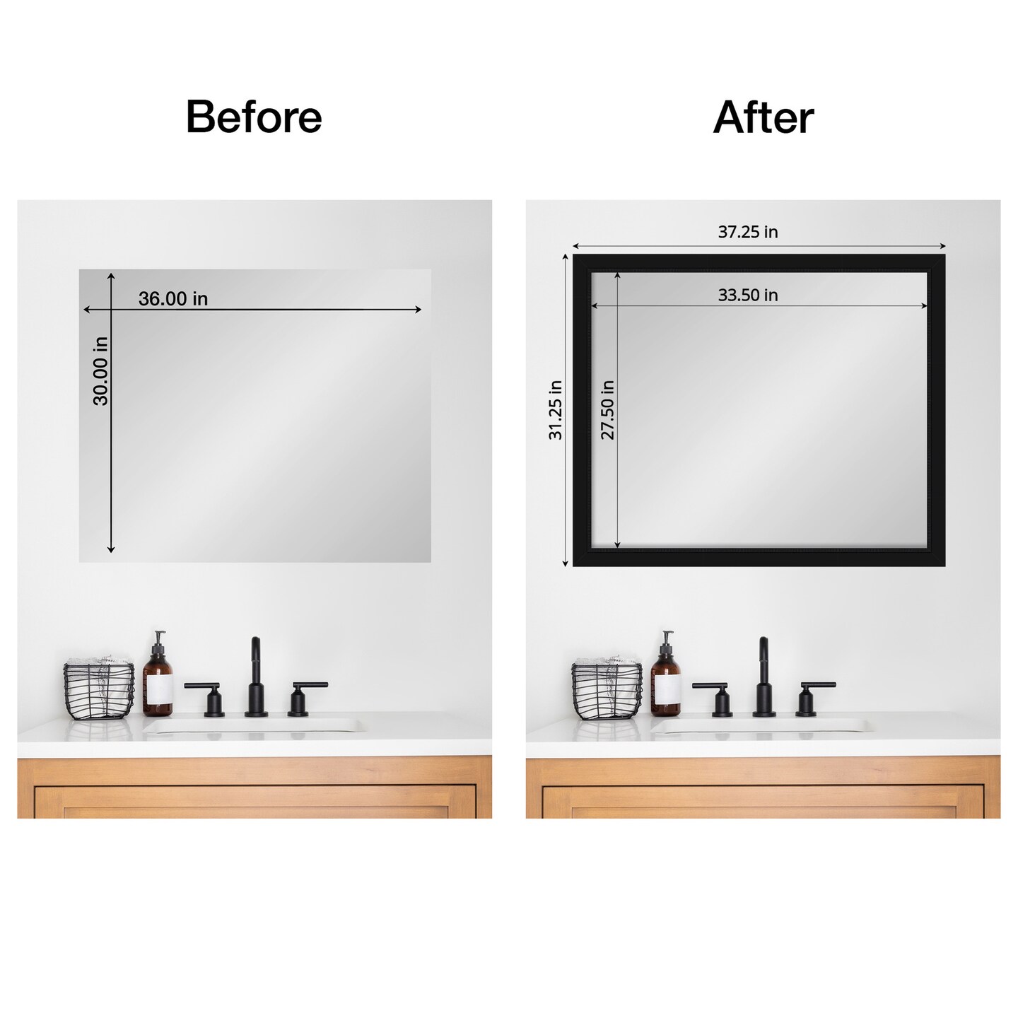 Amanti Art Mirror Makeover Bathroom Mirror Frame Border Kit - Fully Assembled Peel and Stick Frame - Mirror NOT Included - Avon Black Trim