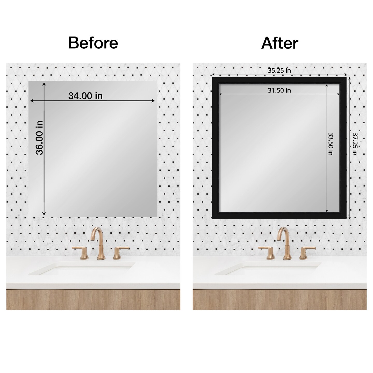Amanti Art Mirror Makeover Bathroom Mirror Frame Border Kit - Fully Assembled Peel and Stick Frame - Mirror NOT Included - Avon Black Trim