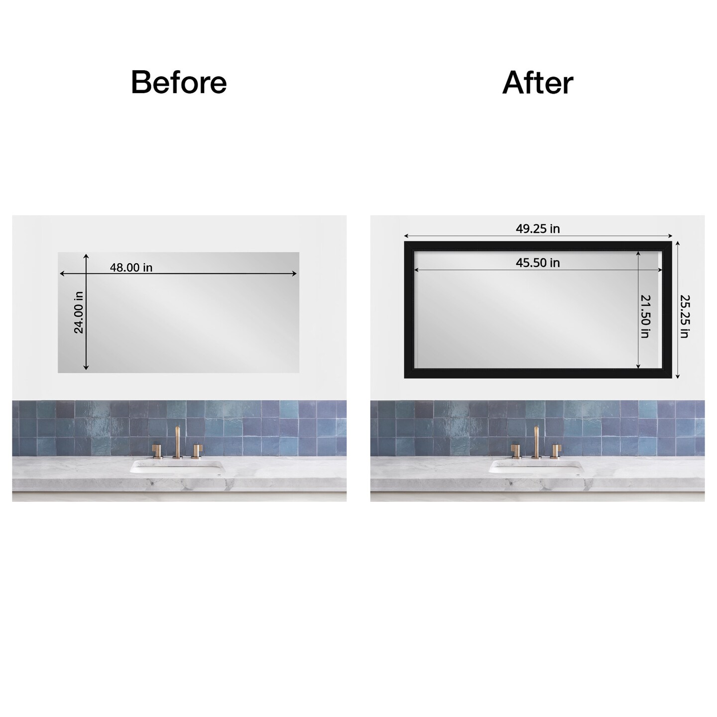 Amanti Art Mirror Makeover Bathroom Mirror Frame Border Kit - Fully Assembled Peel and Stick Frame - Mirror NOT Included - Avon Black Trim