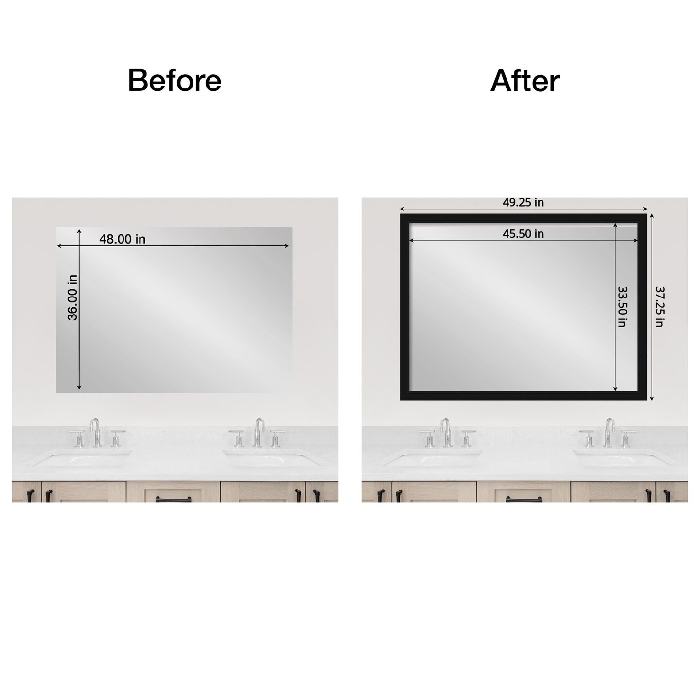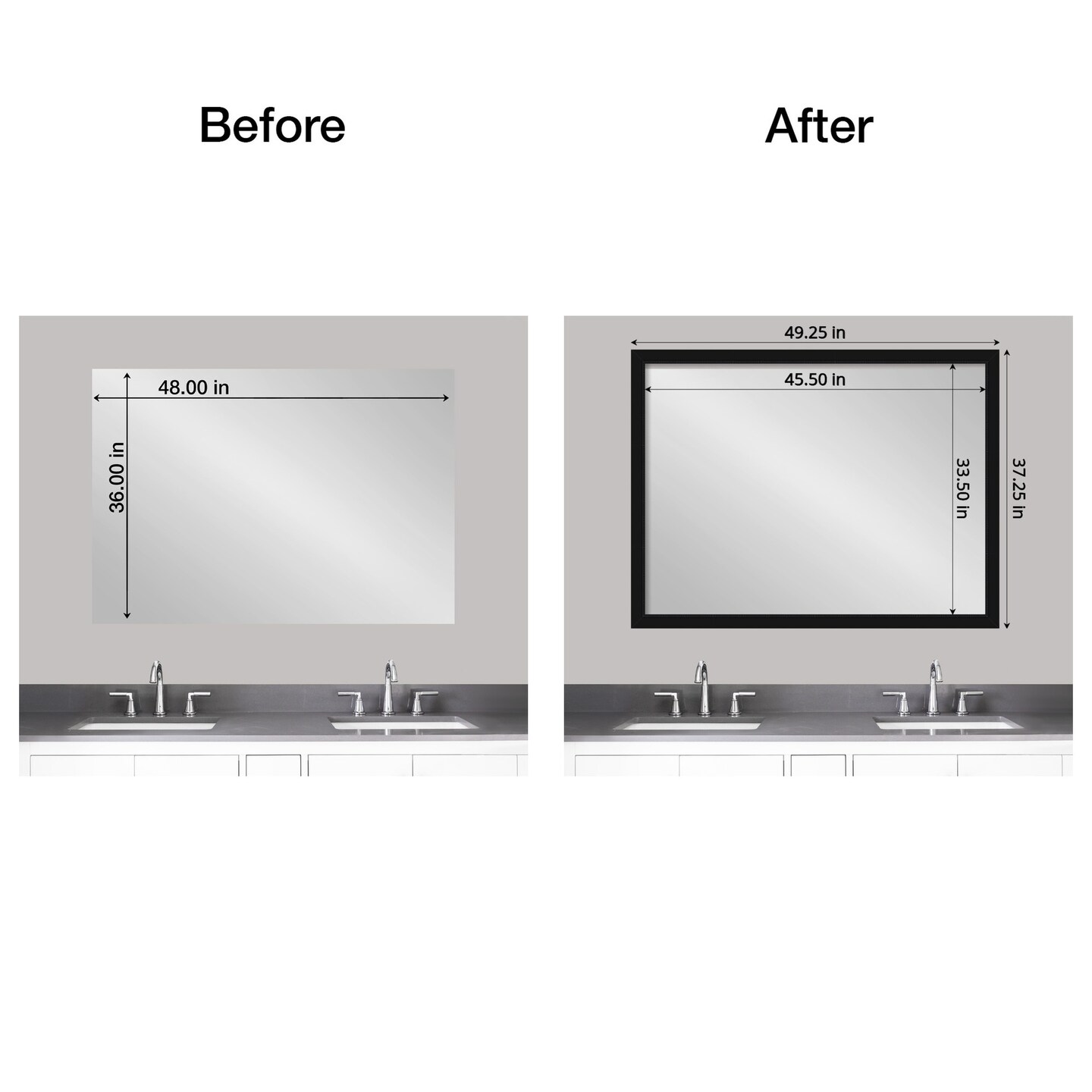 Amanti Art Mirror Makeover Bathroom Mirror Frame Border Kit - Fully Assembled Peel and Stick Frame - Mirror NOT Included - Avon Black Trim