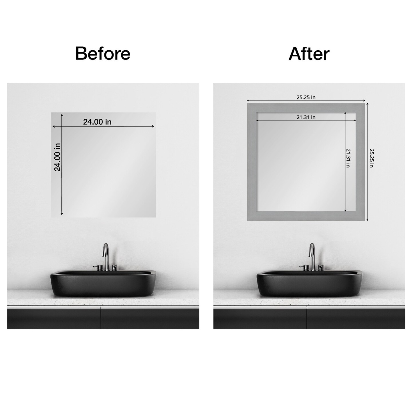 Amanti Art Mirror Makeover Bathroom Mirror Frame Border Kit - Fully Assembled Peel and Stick Frame - Mirror NOT Included - Brushed Black or Nickel Trim
