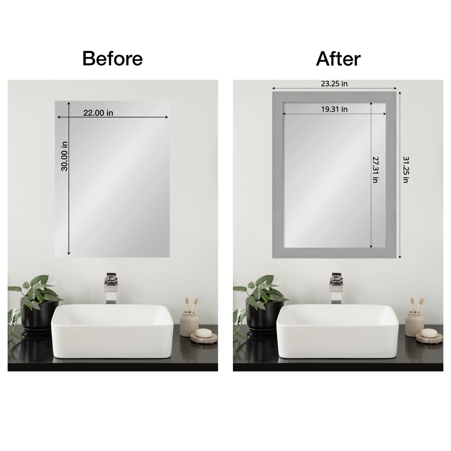 Amanti Art Mirror Makeover Bathroom Mirror Frame Border Kit - Fully Assembled Peel and Stick Frame - Mirror NOT Included - Brushed Black or Nickel Trim