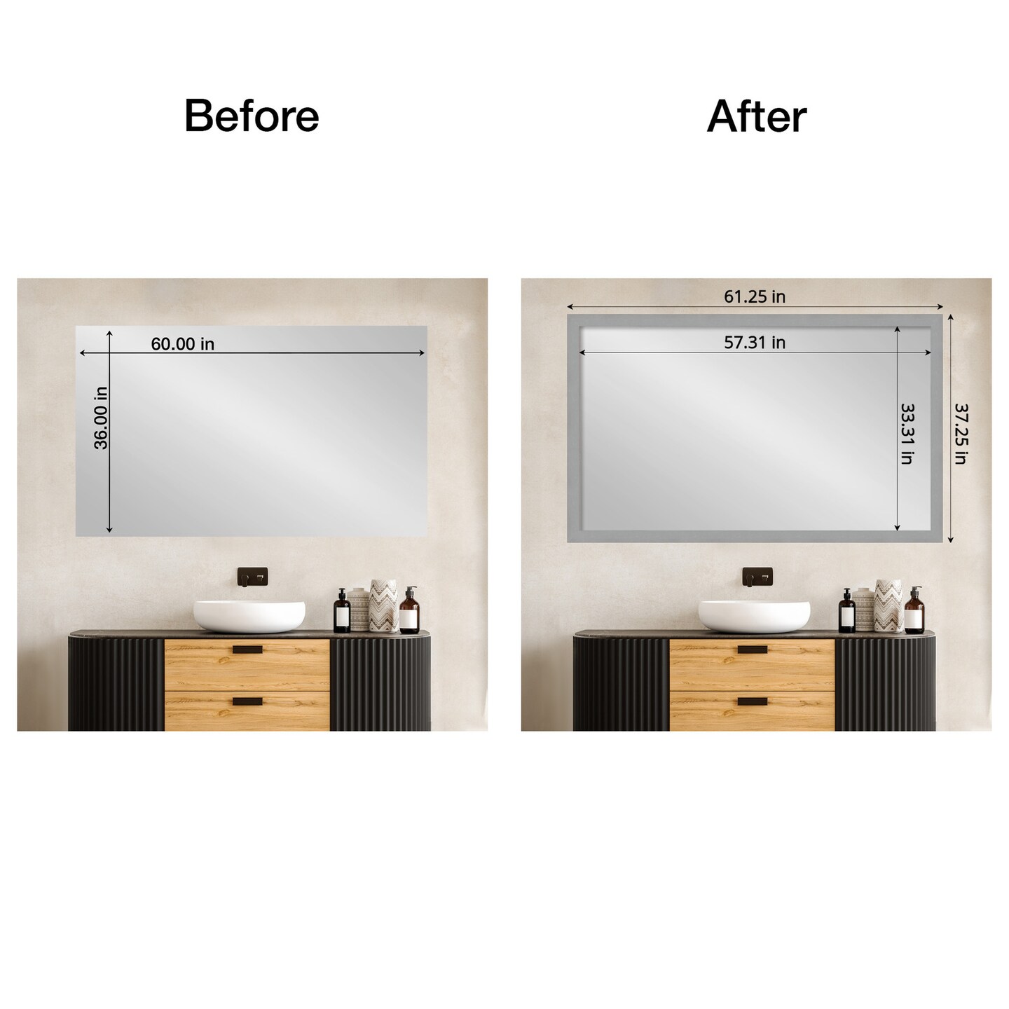 Amanti Art Mirror Makeover Bathroom Mirror Frame Border Kit - Fully Assembled Peel and Stick Frame - Mirror NOT Included - Brushed Black or Nickel Trim