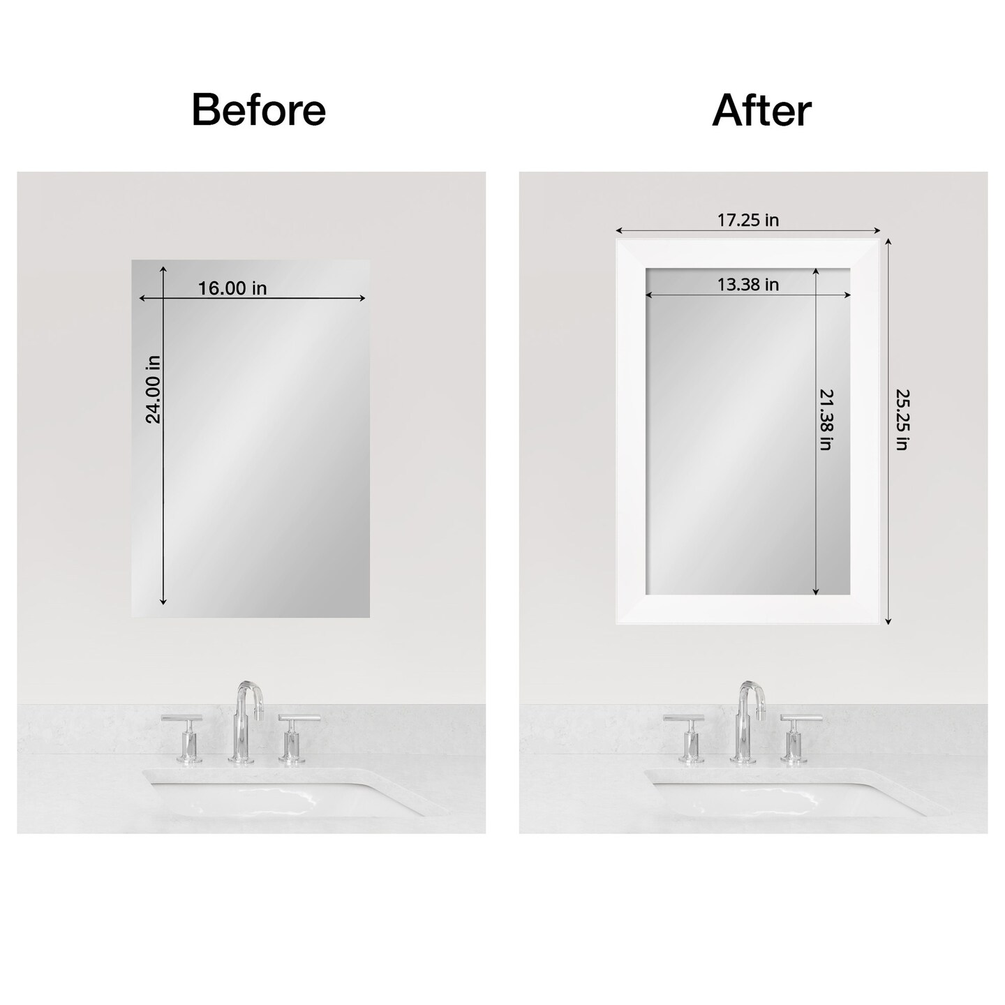 Amanti Art Mirror Makeover Bathroom Mirror Frame Border Kit - Fully Assembled Peel and Stick Frame - Mirror NOT Included - Cabinet White Narrow Trim