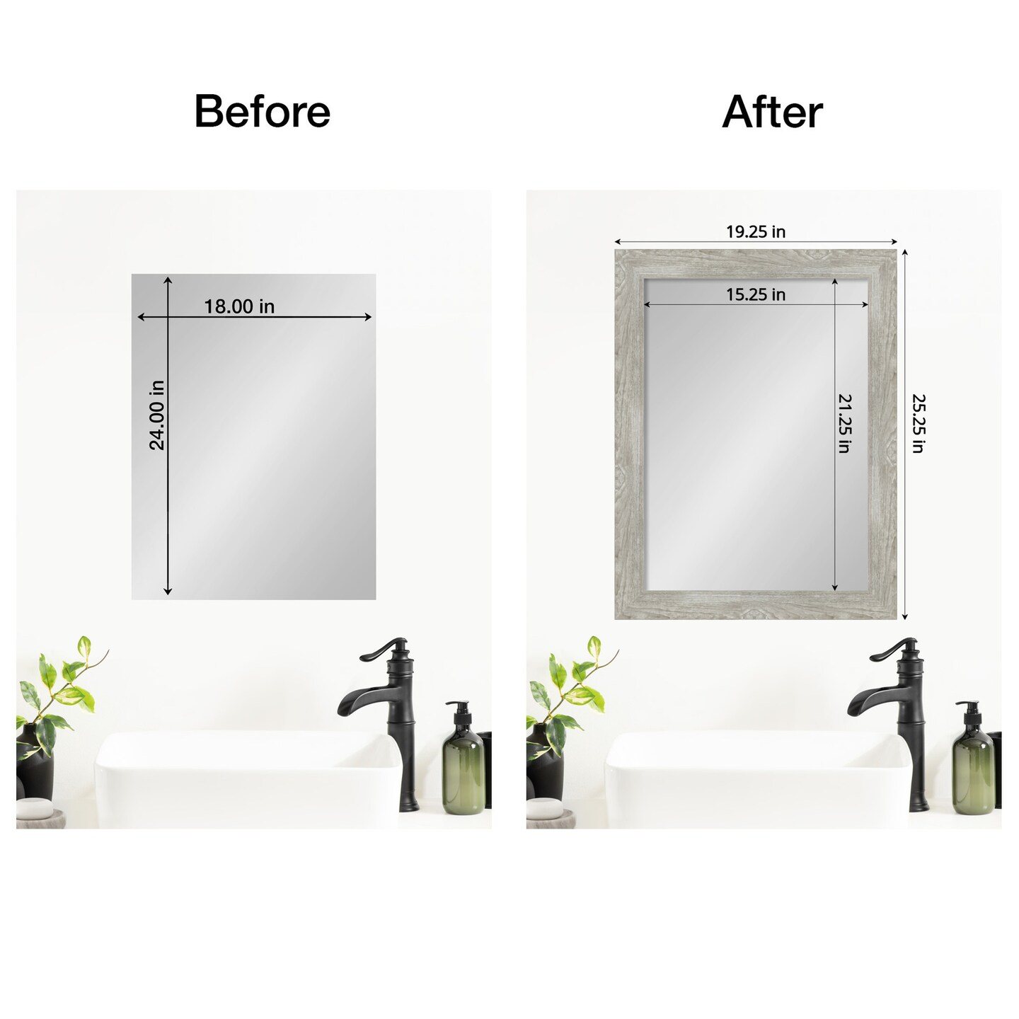 Amanti Art Mirror Makeover Bathroom Mirror Frame Border Kit - Fully Assembled Peel and Stick Frame - Mirror NOT Included - Dove Greywash Narrow Trim